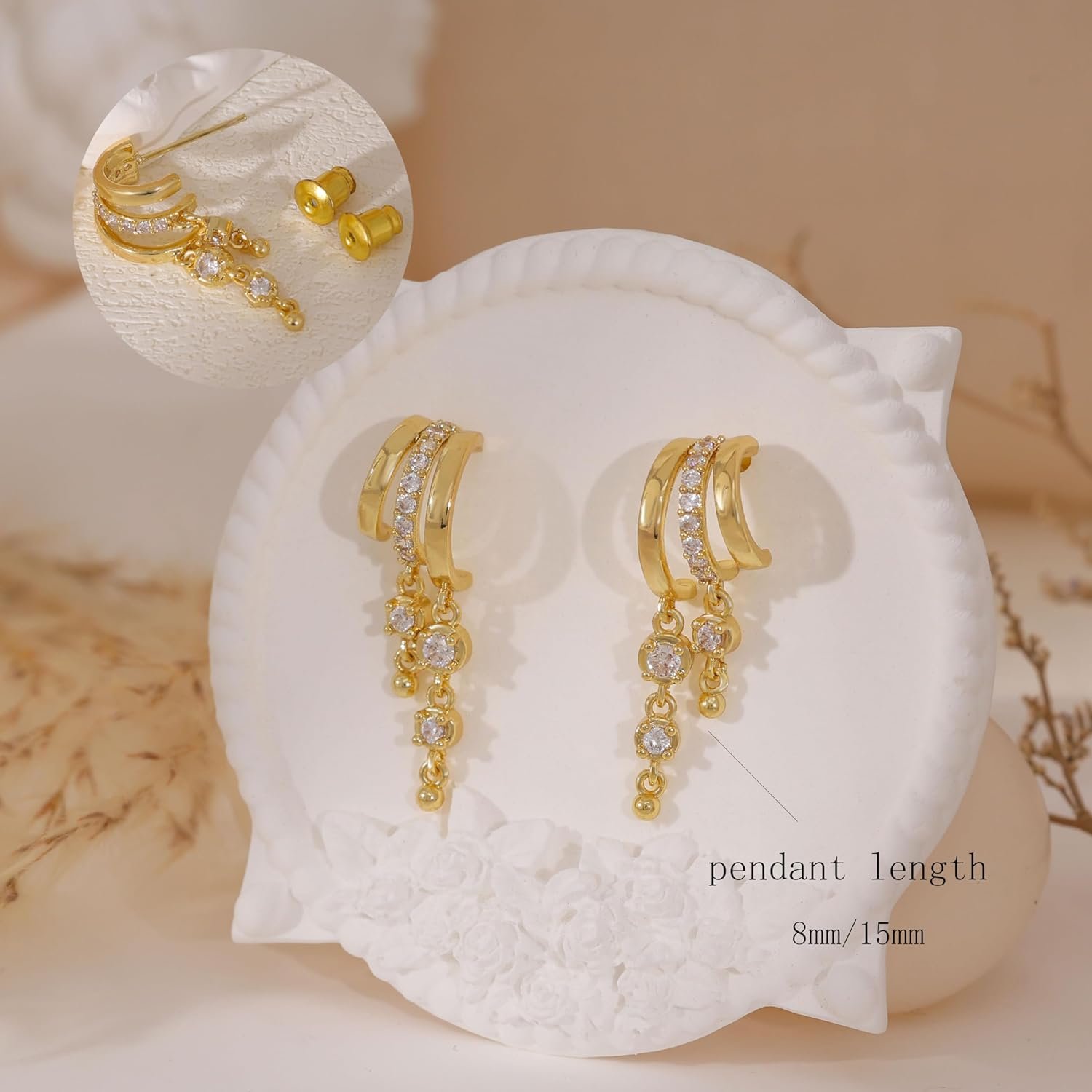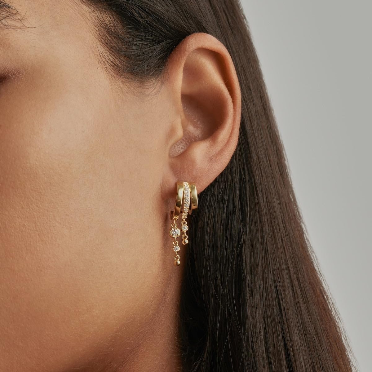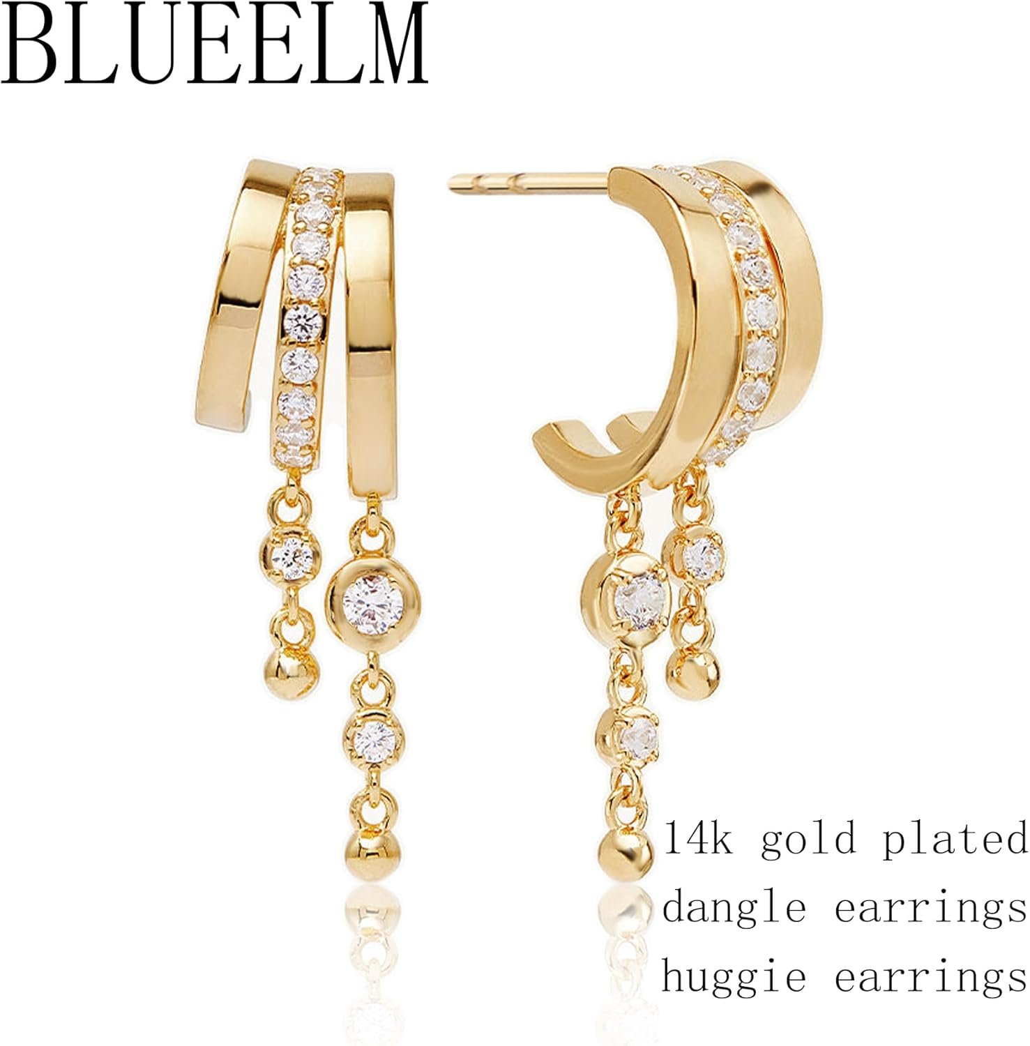 Our triple huggie earrings are designed for single ear and can be worn as is. Our 14K gold plated split wrap earrings with three different lengths of pendant design make a stylish statement and are perfect for any occasion. These beautiful drop earrings are the perfect fashion accessory for any woman