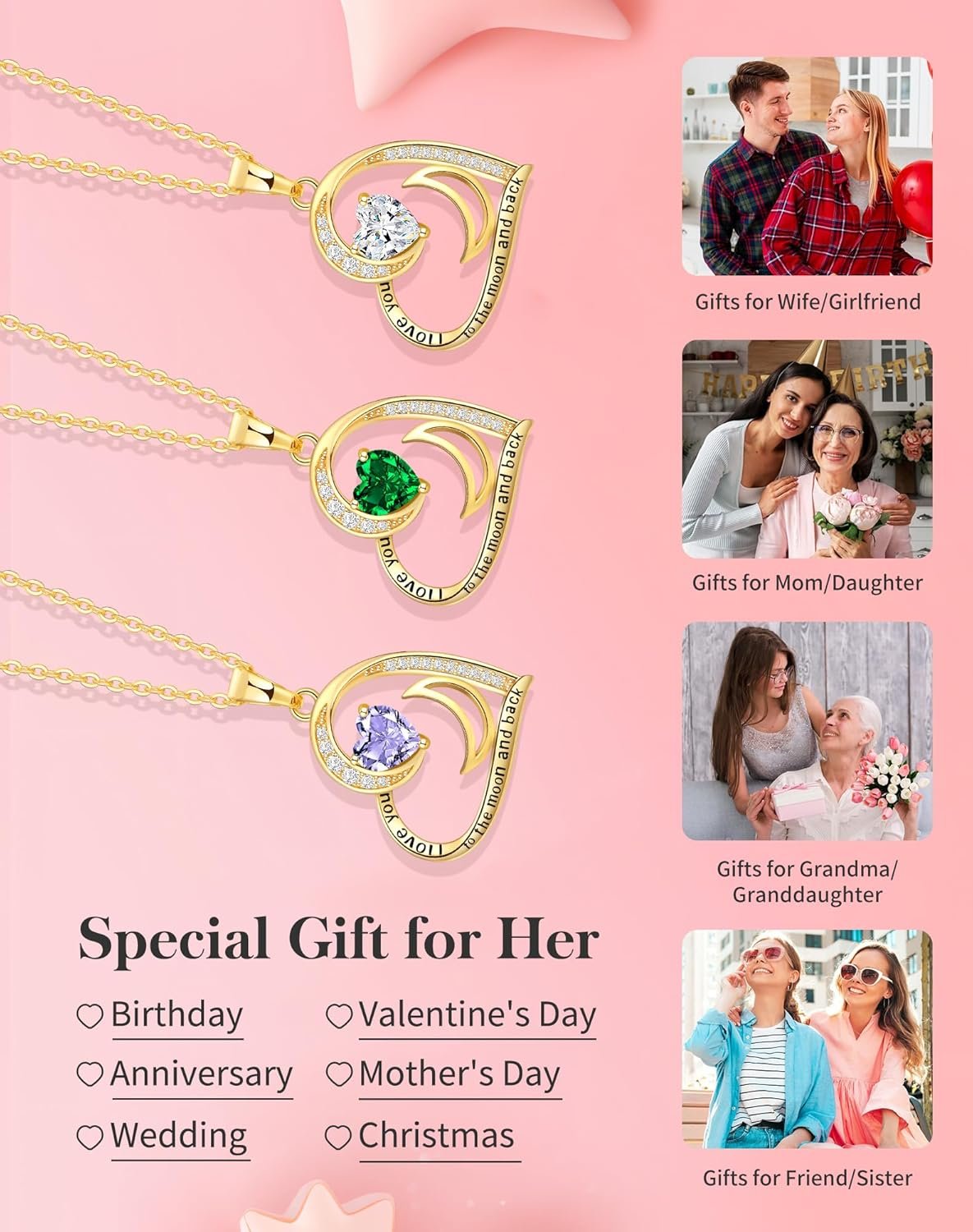 Jewelry is a way of capturing precious moments and keeping memories alive for a lifetime. This delicate women necklace gives you more brave to tell her ” I love you to the moon and back”.