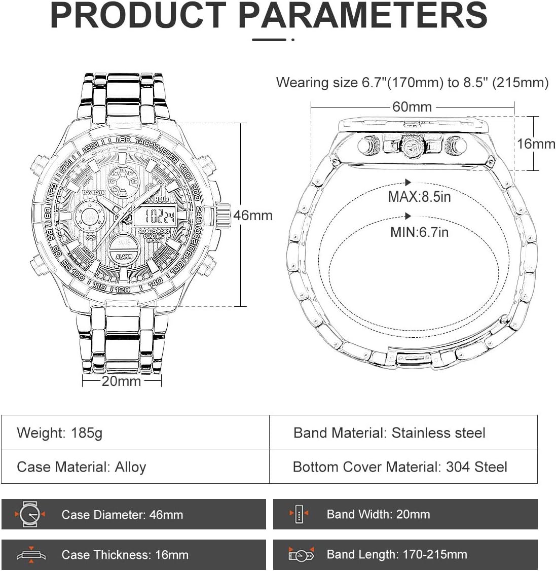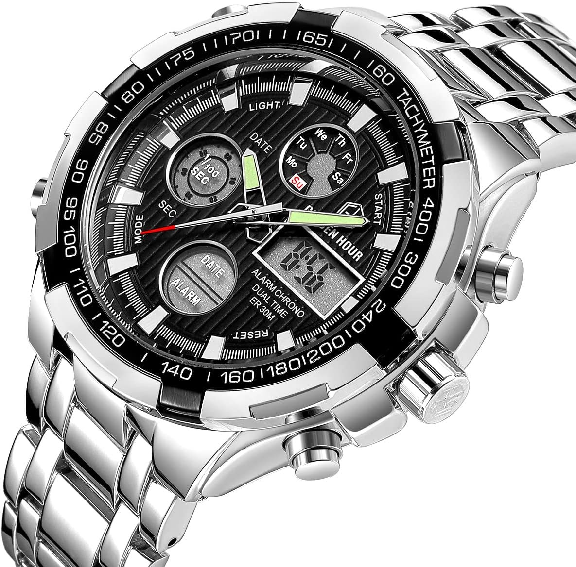 GOLDEN HOUR Luxury Stainless Steel Analog Digital Watches for Men Male Outdoor Sport Waterproof Big Heavy Wristwatch