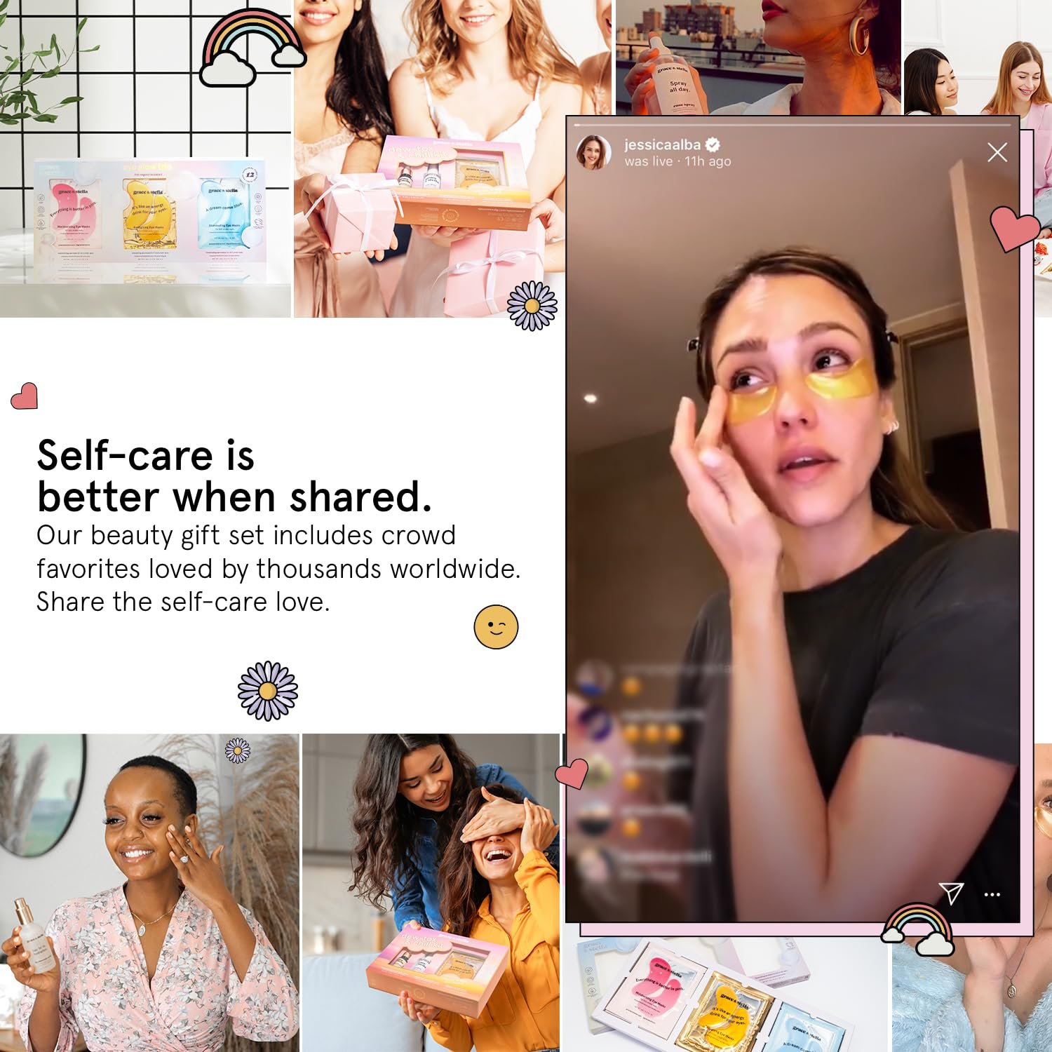 Bye-Bye Tired Eyes – Our travel size skincare set includes our bestselling gold under eye masks that energize tired eyes. They tackle visible dark circles and puffiness, so you look fresh and well-rested after a long night or an early start.