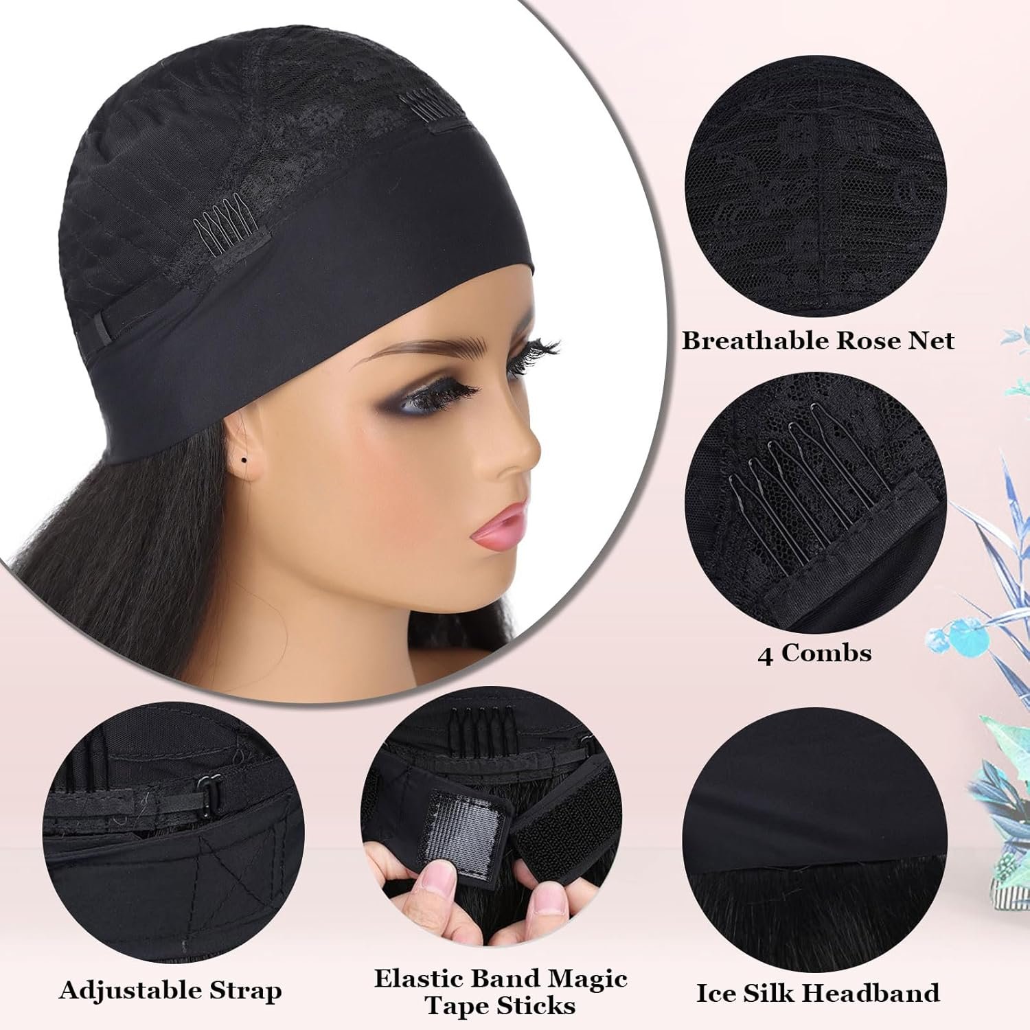 【Yaki Straight Headband Wig Feature】Medium cap size( 22.5inch) fits most women girls, with 2 adjustable straps in the back, and 3 combs inside, can help you adjust the cap to a comfortable position.