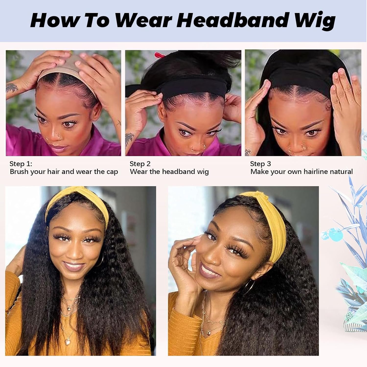 【Wide Occasion】Perfect for beginners. You can wear the kinky straight headband wig in many occasions, concerts, themed parties, weddings, dating, school, and any other occasions. Fashionable and generous, simple and sexy, will bring you a lot of compliments.