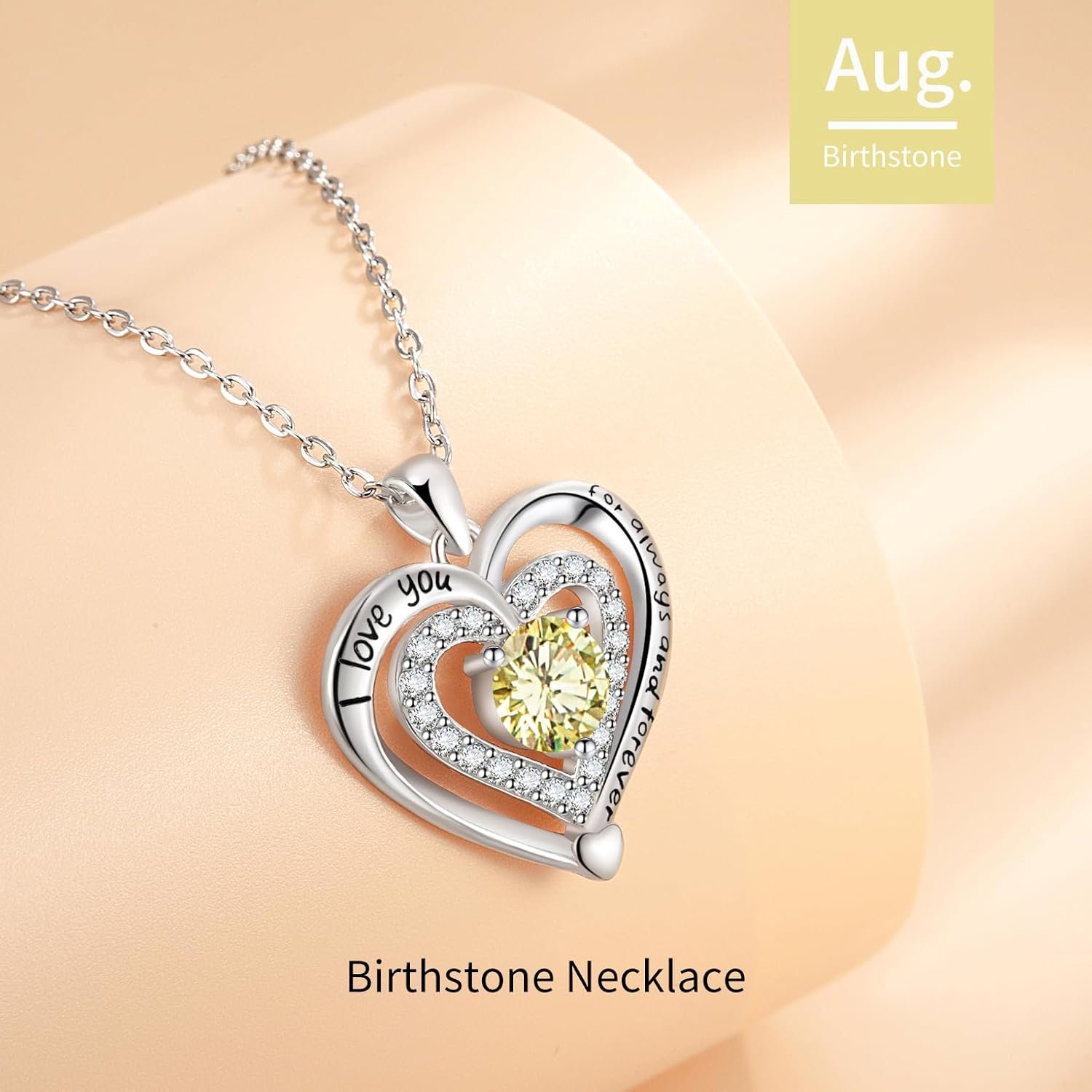 Always and Forever I Love You Necklace, Birthstone heart Pendant.