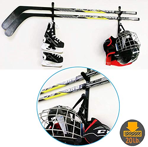 Durable hockey stick rack ( 2 racks ) Simple to Install . Hardware included. HOLD ALL OF YOUR GEAR: Store your ice hockey skates, helmet, gloves, Sticks Pads and different Equipment . Nice technique to organize your house, garage, or ice rink Multi-purpose: retail outlets lacrosse sticks, Samurai Sword, Fishing Rod, Billiard stick, and so forth.