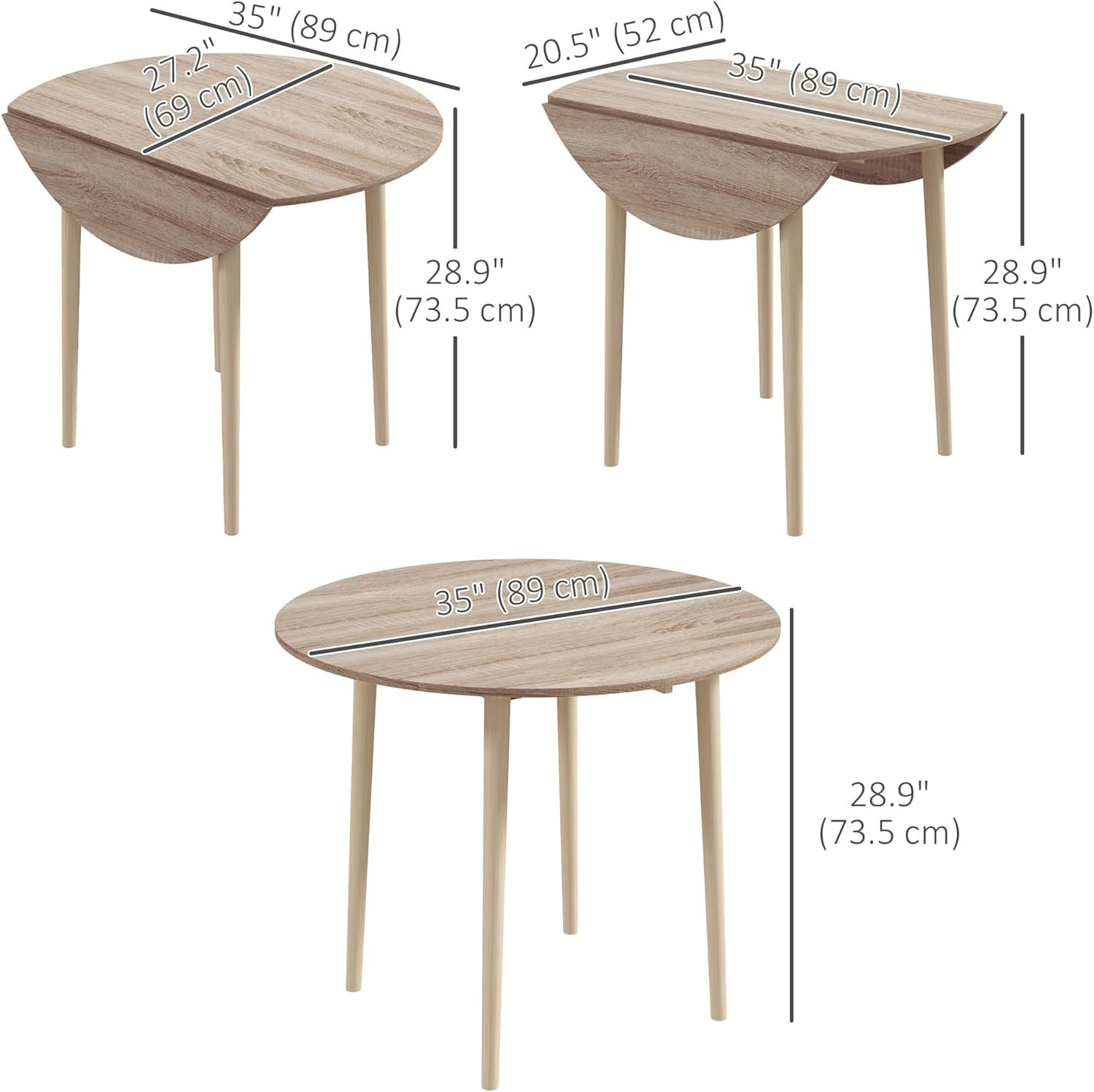Be the first to review “HOMCOM 35″ Small Kitchen Table, Collapsible Drop Leaf Table for Small Spaces, Round Folding Dining Table with Solid Wood Legs for Kitchen, Dining Room, Oak”