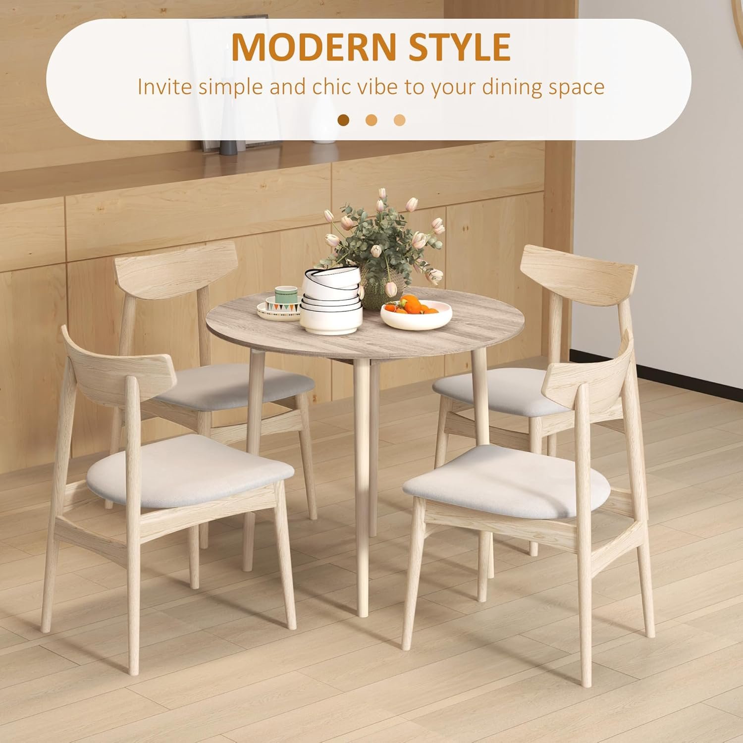 Modern Esthetic: This space-saving dining table seamlessly complements kitchens and dining rooms with a subtle wood-textured surface, adding understated elegance to various decorative styles.