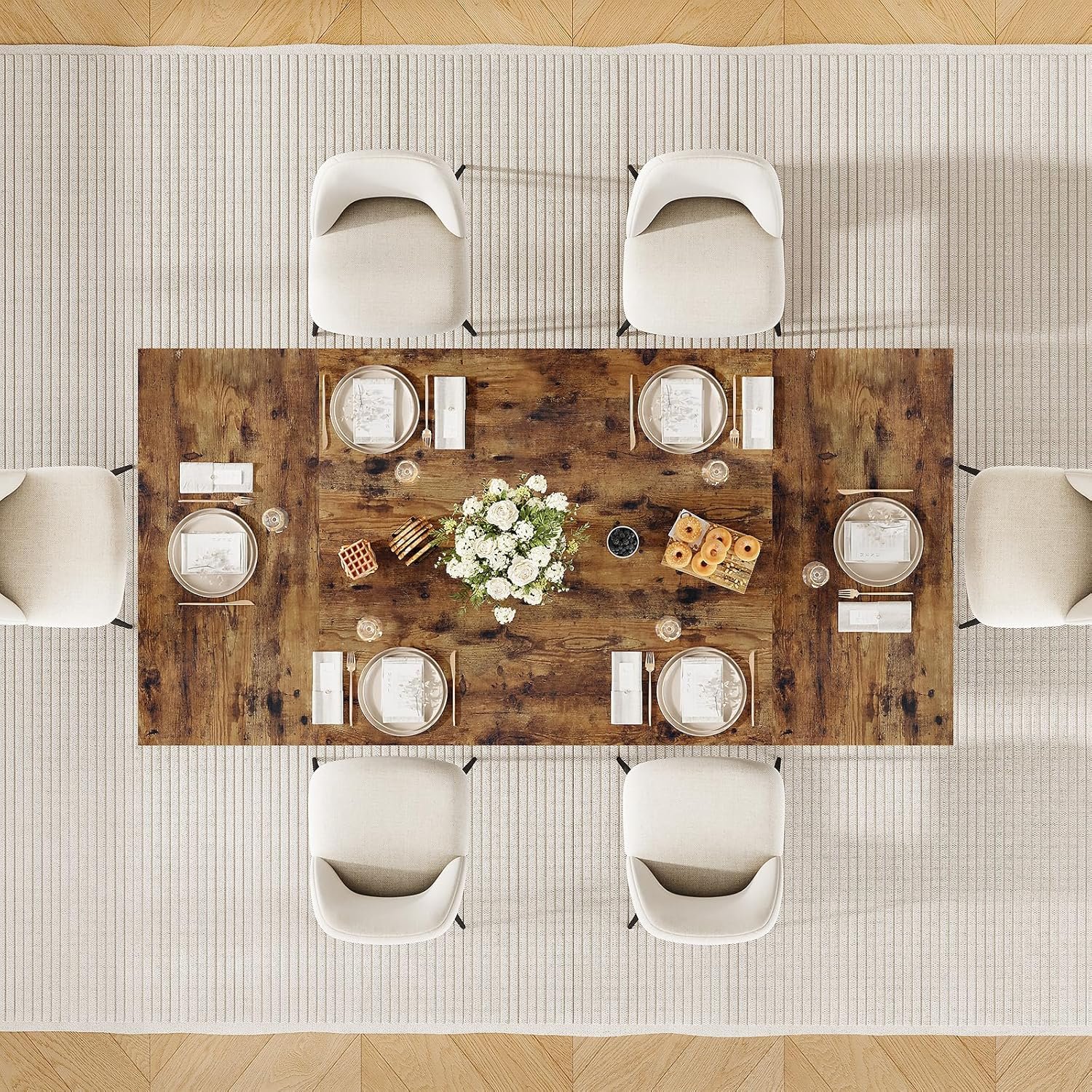 Multi-Occasion Application: In addition to being a farmhouse kitchen dining table, it’s also versatile that can be used as a kitchen table, computer desk, or conference table, ideal for hosting large gatherings or professional meetings. From intimate dinners to productive brainstorming sessions, it accommodates every occasion with ease
