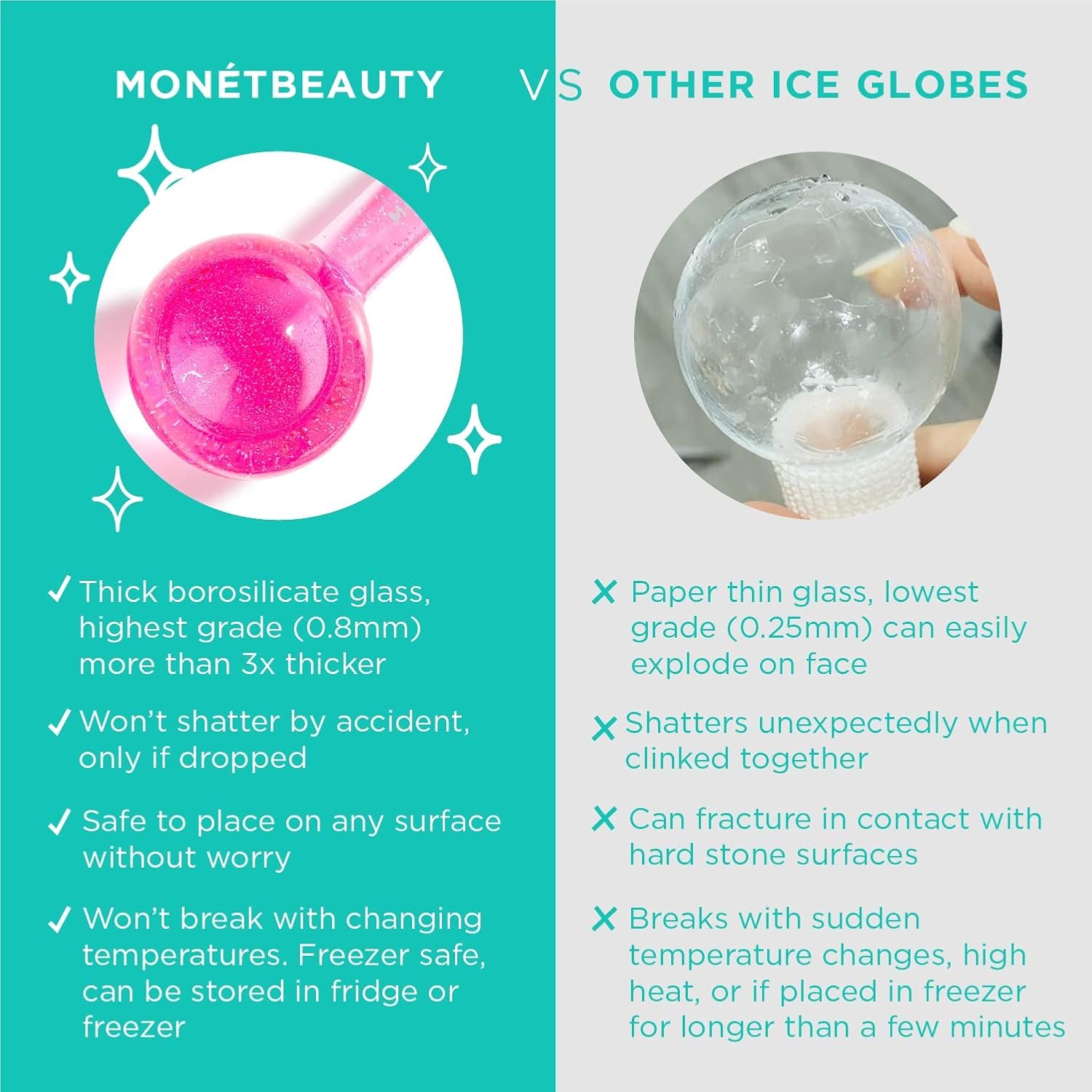 Made with premium glass and non-toxic antifreeze liquid. Unlike other brands, MonetBeauty Ice Globes are safe to store in the freezer, we use only high-end durable borosilicate glass to minimize likelihood of glass breakage.