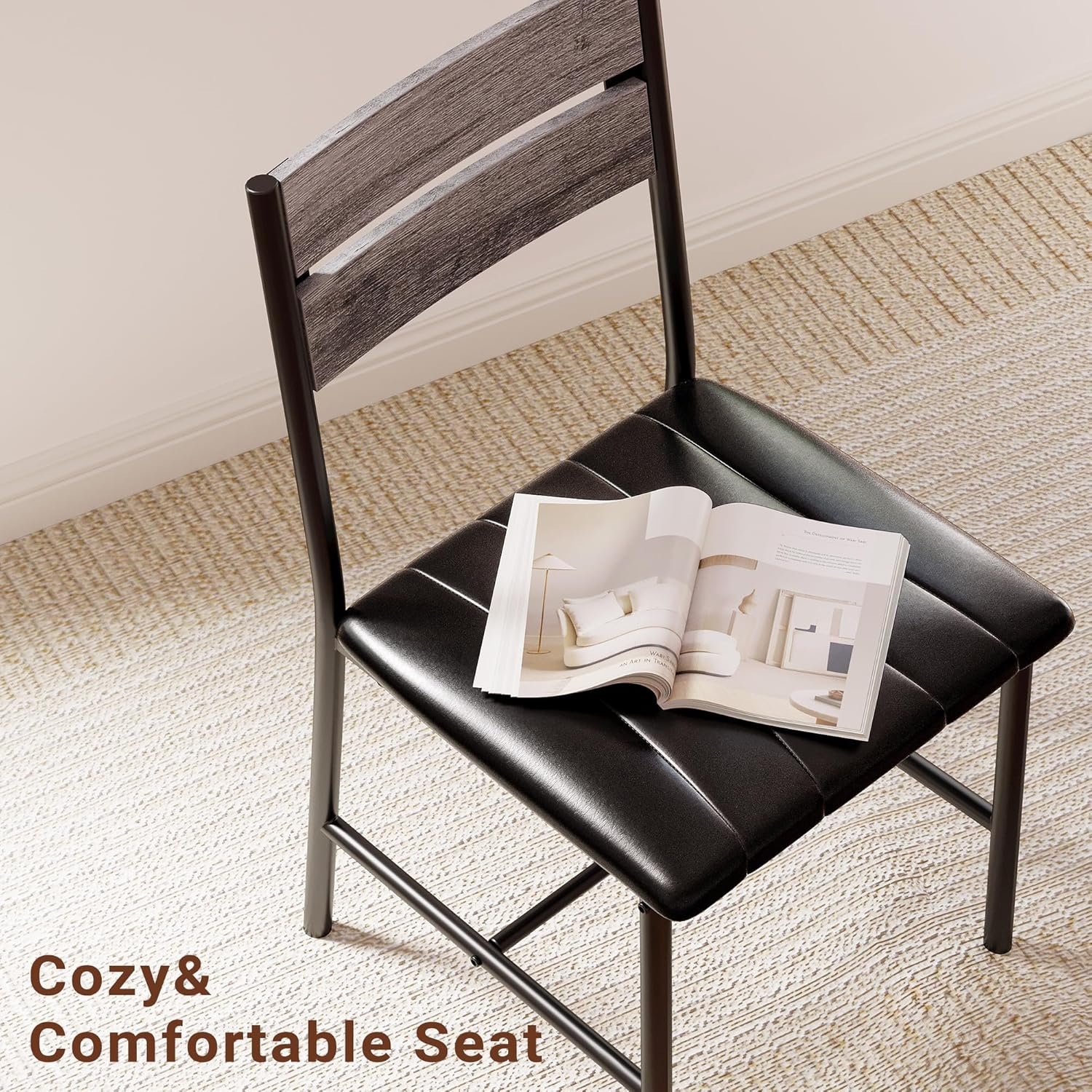 This dining table set measures 43.3″(L) x 27.6″(W) x 29.9″(H), perfectly sized to comfortably seat up to 4 people.