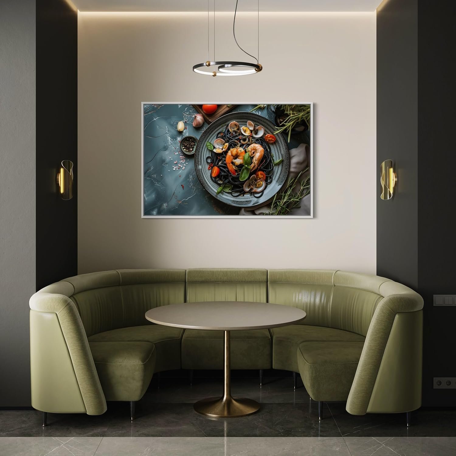 Italian Gourmet Seafood Squid Ink Spaghetti Pasta Culinary Fine Dining Restaurant Kitchen Dining Decor Wall Art Photography Art Italian Gourmet Seafood Squid Ink Spaghetti Pasta