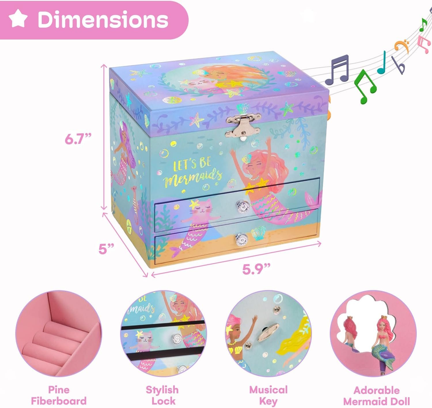 Be the first to review “Jewelkeeper – Musical Jewellery Box for Girls with 2 Storage Drawers, Rainbow Mermaid and Gold Leaf – Melody Sobre las Olas Olas”