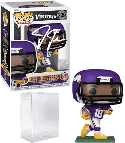 Specification: Justin Jefferson #239 Facsimile Signed Reprint Laser Autographed Funko POP! Football NFL: Minnesota Vikings Figurine with Protector Case