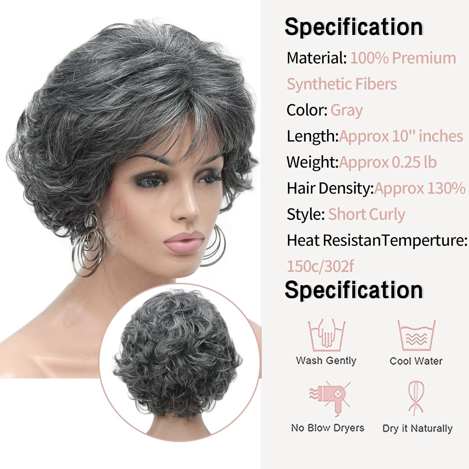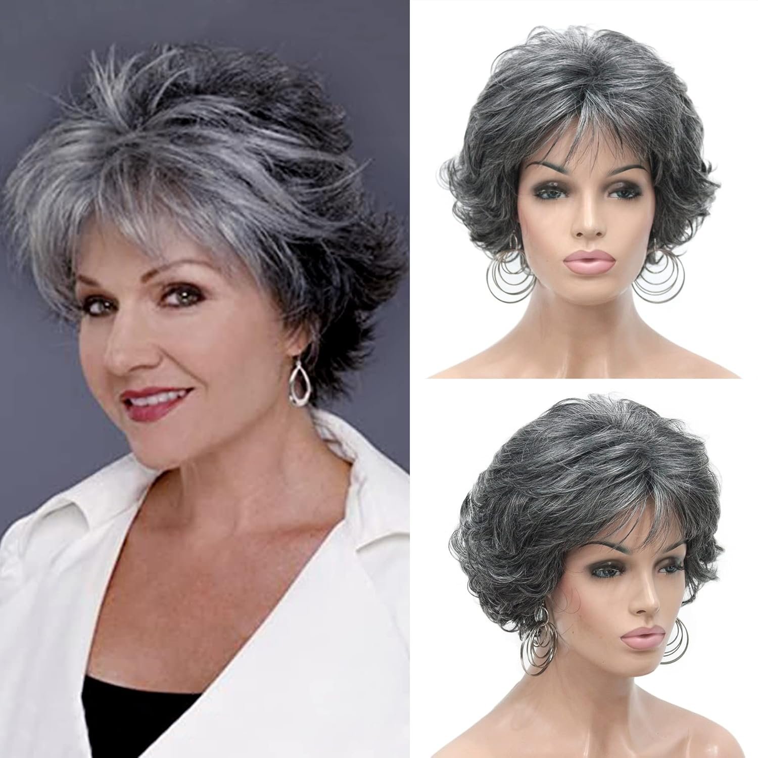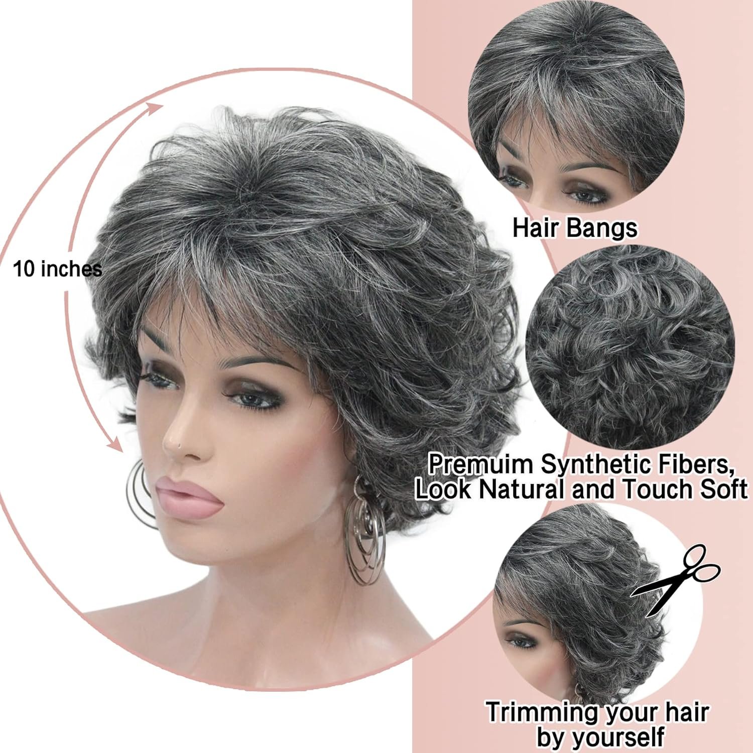 Comfortable and Suitable Wearing: At only 5.7 oz, our wigs for older white women is light enough to keep your head away from feeling squashed and weighted down. The length of curly wavy wig is 10″, wig cap circumference is 21.5″-22.5″, ear to ear is 13.5″-13.75″, front to back is 14″-14.5″, which fits most head sizes. Kalyss gray short wig cap has 2 combs and 2 adjustable elastic straps to make sure that the cap stays on the head as firmly as the scalp, and it’s easy to put on and take off