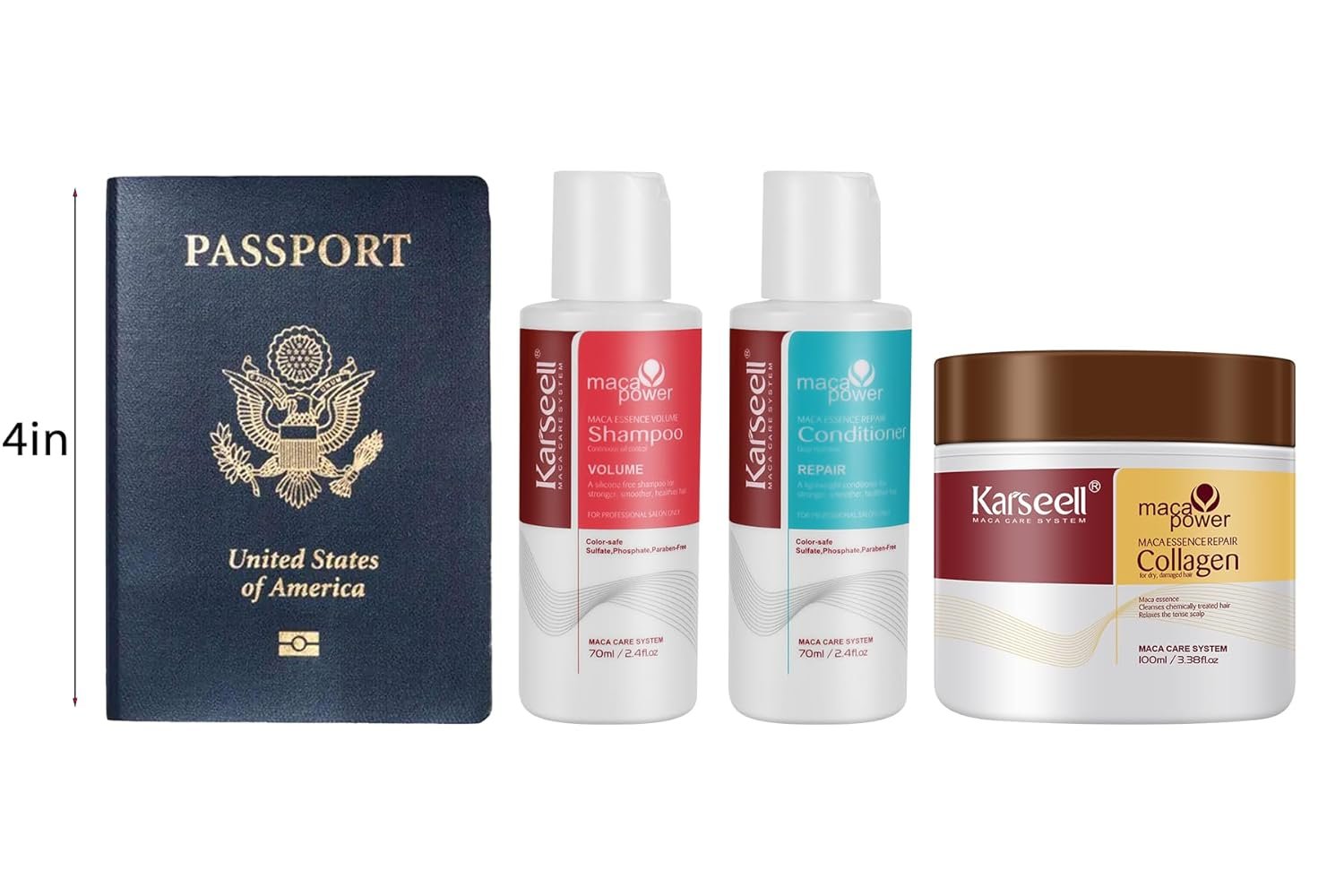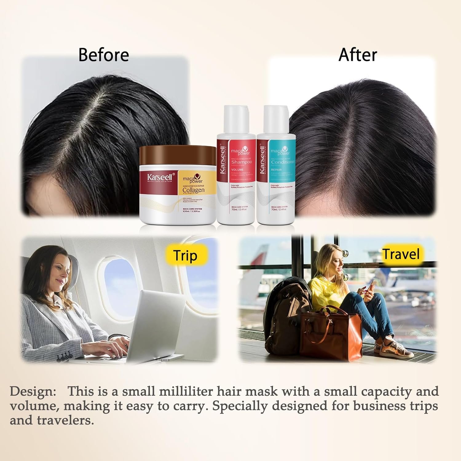 Karseell Travel Size Toiletries for Women Hair Essentials Kit Volumizing Shampoo and Conditioner Set with Collagen Hair Mask Convenience Kits for Dry Damaged Hair All Hair Types
