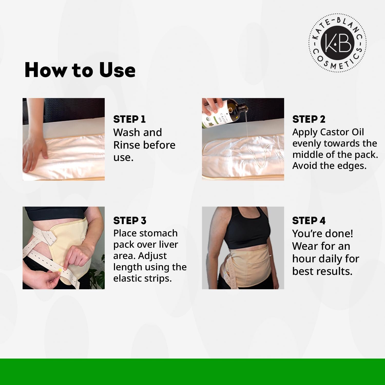 ORGANIC CASTOR OIL PACK: This kit includes a 16oz glass bottle of Kate Blanc’s Organic Castor Oil and an adjustable castor oil pack for the abdominal area such as stomatch and belly. The included pack allows for a comfortable, mess-free application, helping the oil absorb easily into the skin and moisturize your body; ideal for those looking to incorporate castor oil into their self-care or wellness routine.