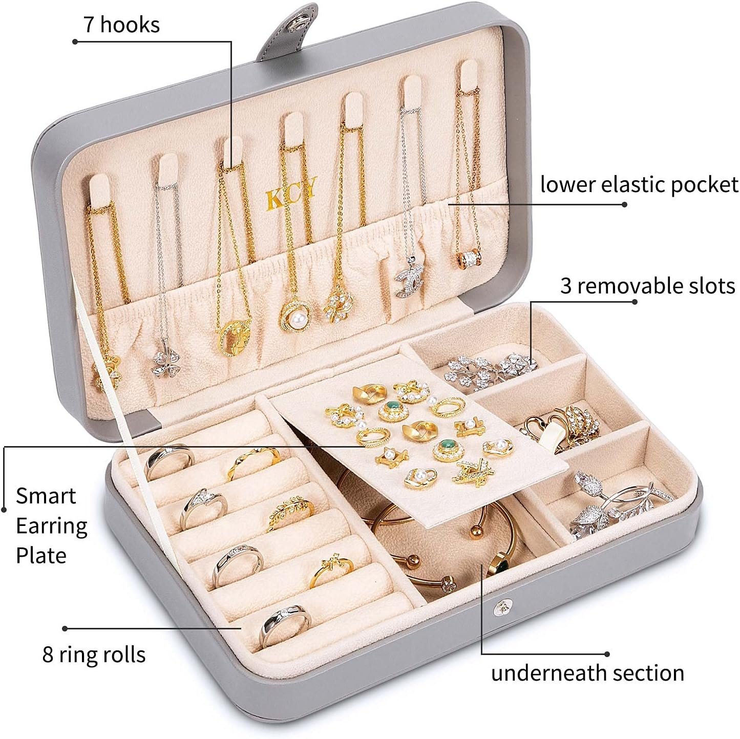 Be the first to review “KCY Travel Jewelry Organizer Box for Women Girls, Small Travel Jewelry Case, PU Leather Portable Jewellery Storage Boxes Display Holder for Ring Earrings Necklace Bracelet Bangle, Gifts,Grey”