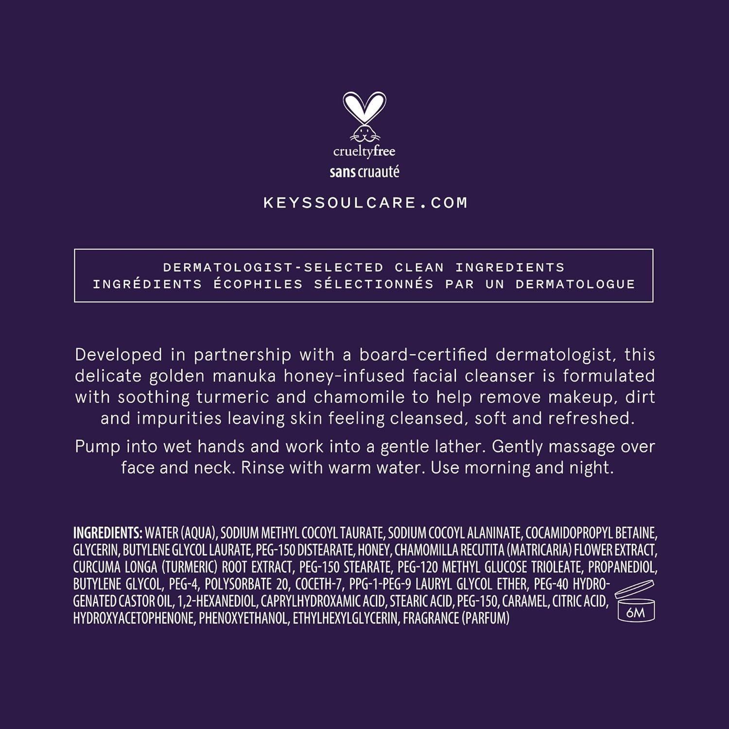 Keys Soulcare Golden Cleanser, Foaming Face Wash Gently Removes Dirt, Makeup & Impurities, Soothes Skin with Manuka Honey, Cruelty-Free, Calming Scent