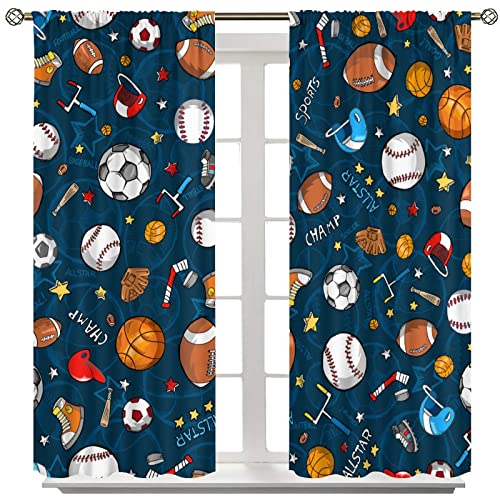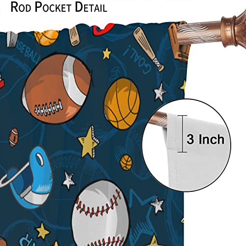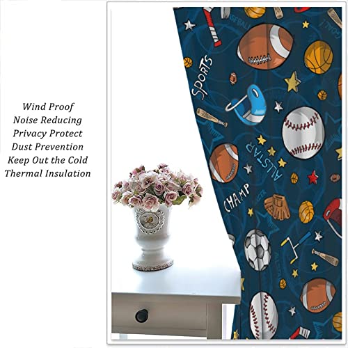 Specification: Kids Bedroom Window Curtains, Basketball Soccer Baseball Sports Theme Teenage Boys Home Living Room Blackout Curtains,Decor 42×45 Inch