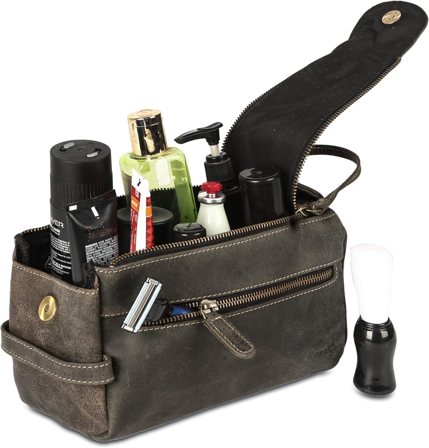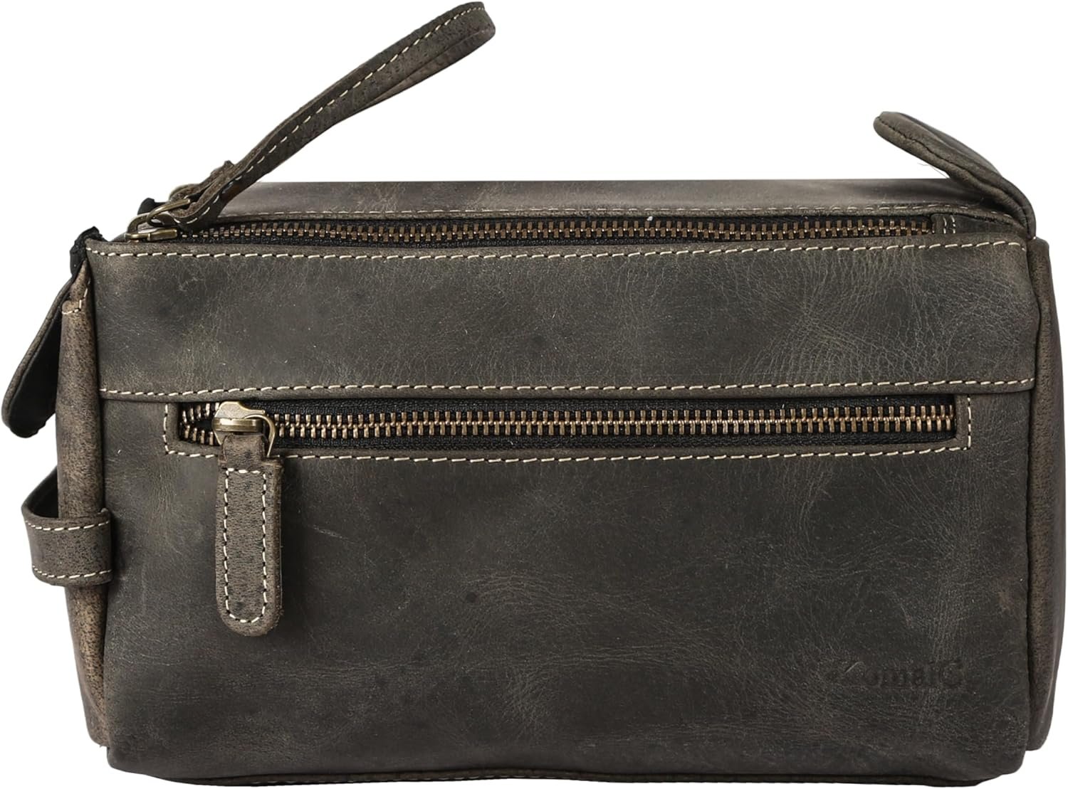 KomalC Premium Buffalo Leather Unisex Toiletry Bag Travel Dopp Kit
