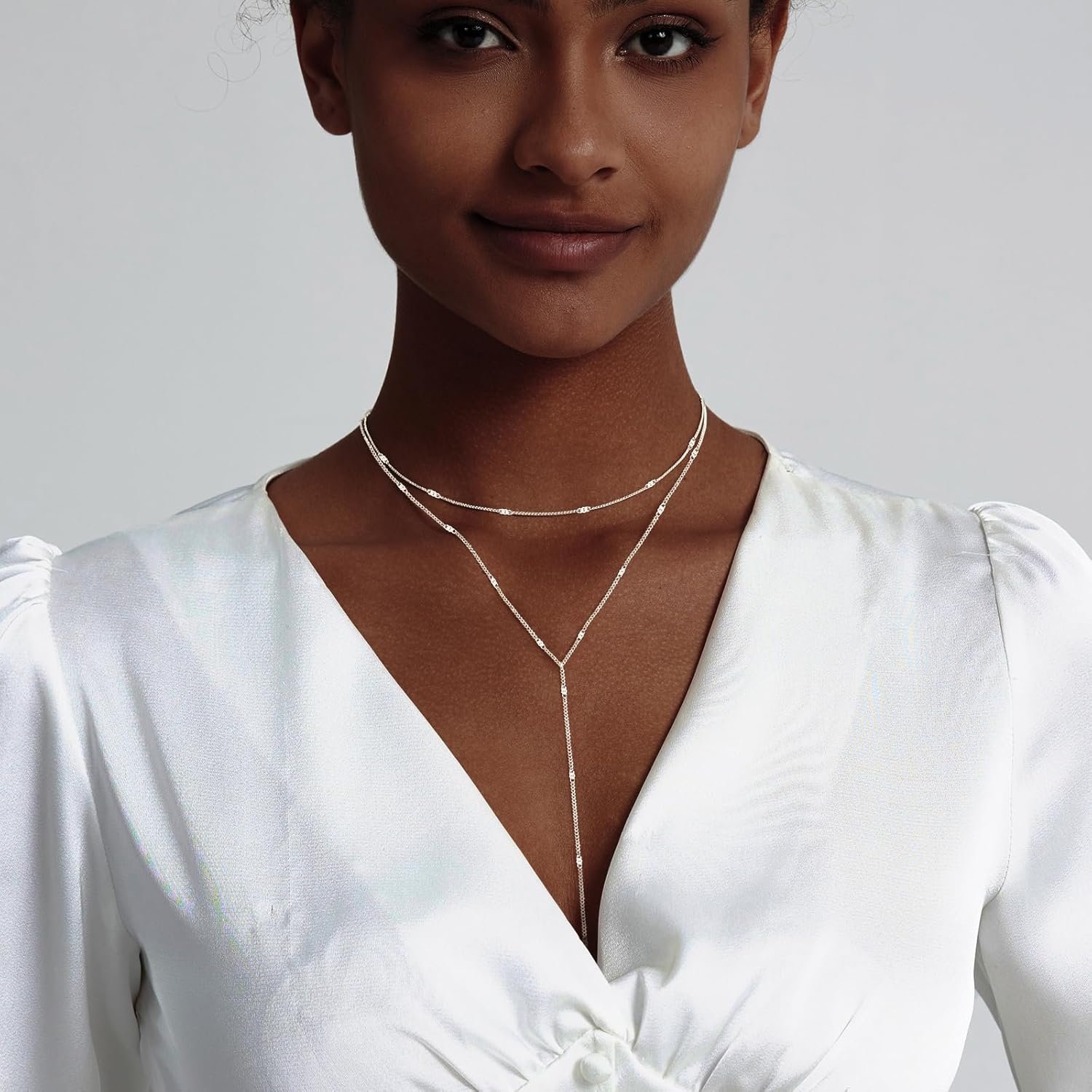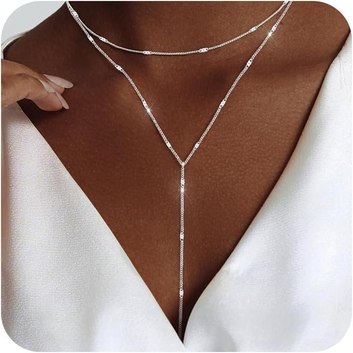 Lariat Gold Necklace for Women Trendy Dainty 14k Gold Plated/Silver Layered Chain Drop Necklaces Y-Shaped Necklace Jewelry for Women Gifts