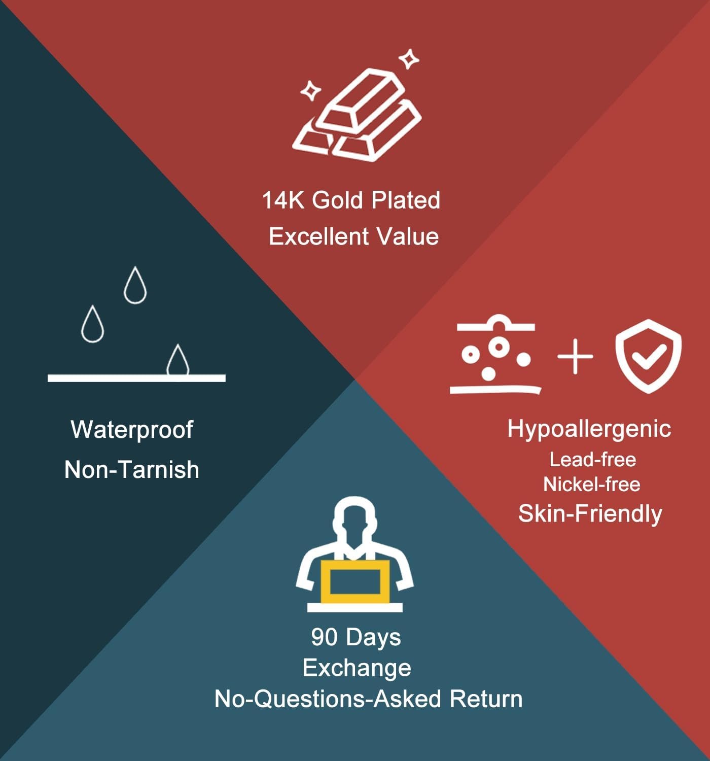 All gold jewelry from “Picuzzy” is plated with multiple layers of 14K real gold by artisans in New York. And all of them will non-tarnish.