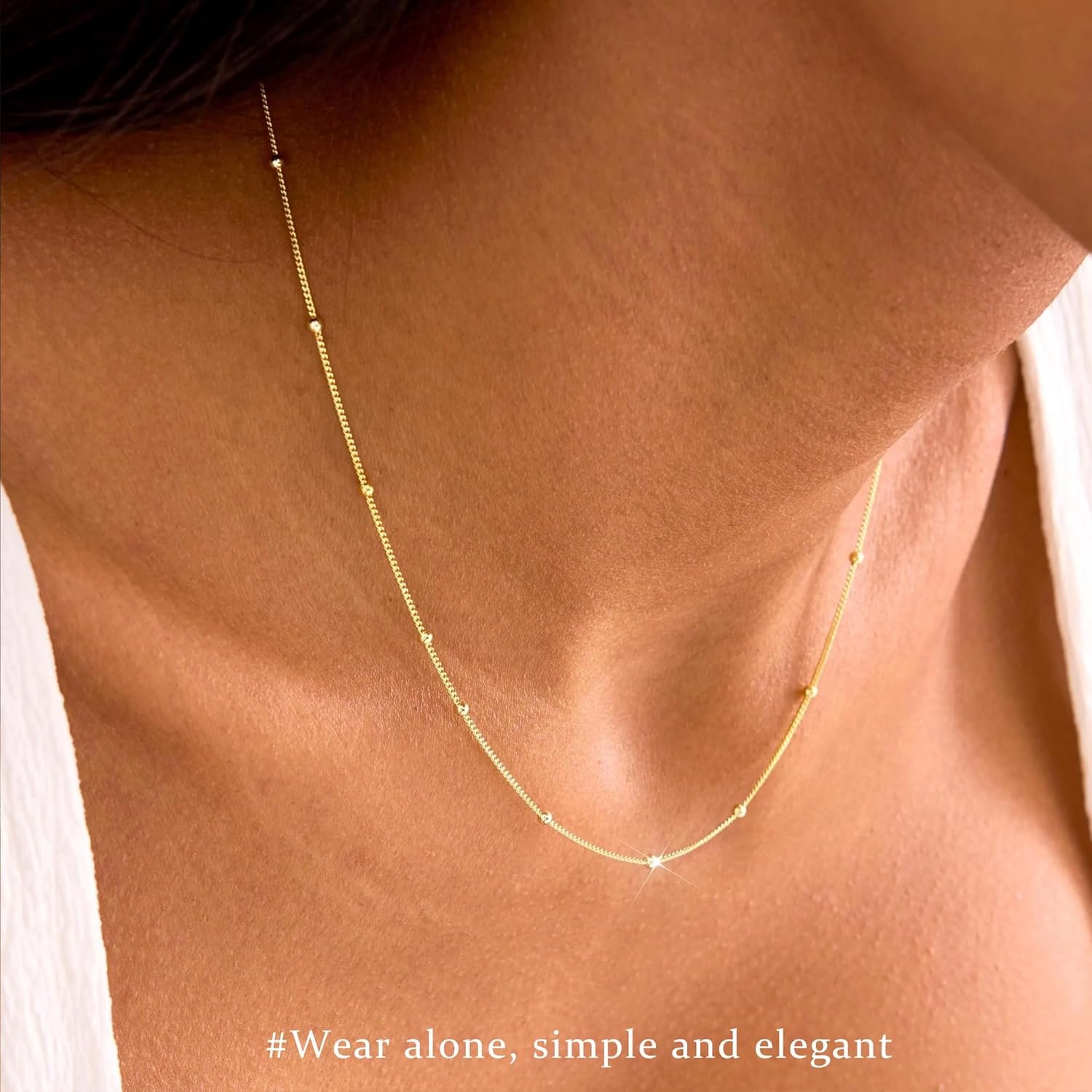 The video showcases the product in use.The video guides you through product setup.The video compares multiple products.The video shows the product being unpacked. dainty gold necklace for women Merchant Video
