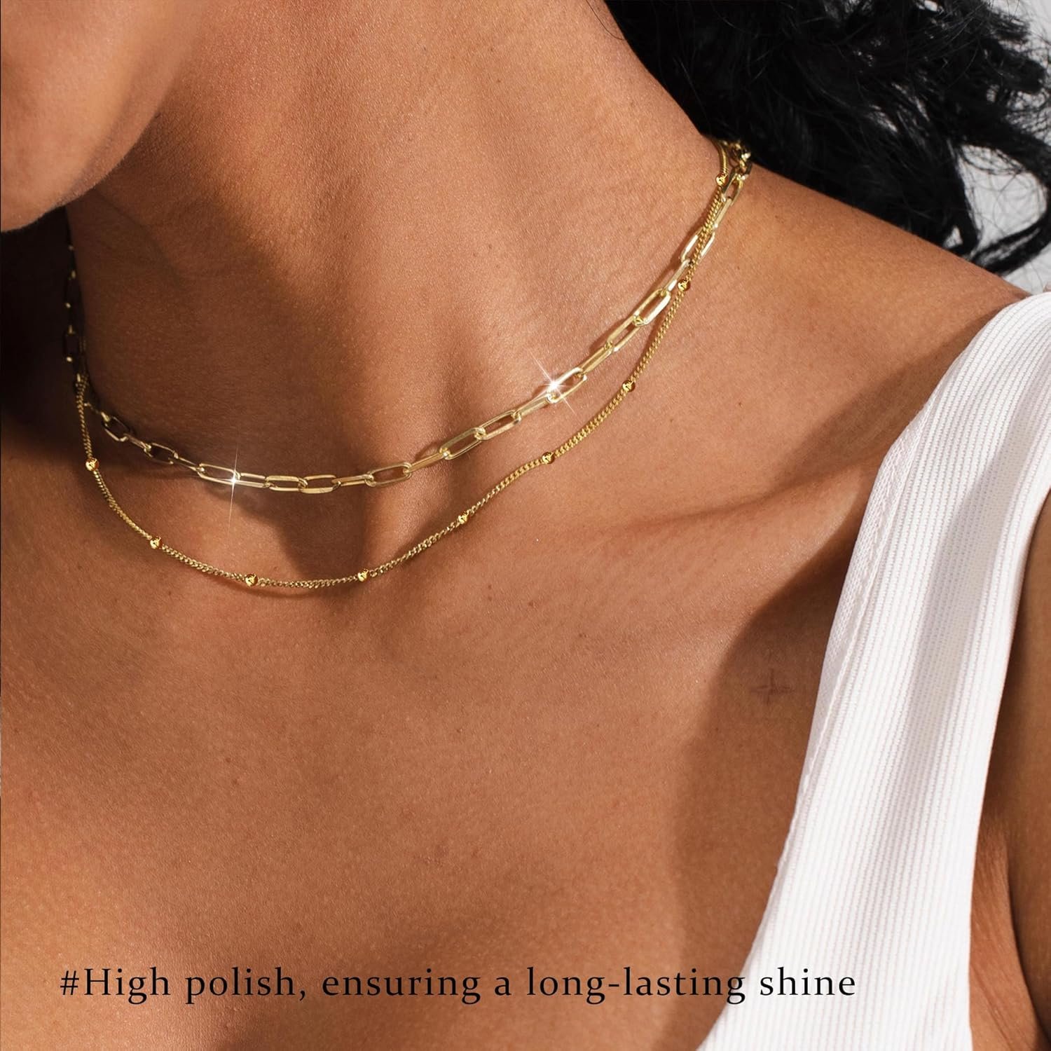 This gold layered necklaces for women made with high-quality brass and gold 14K plated for durability, lead-free,nickel free and hypoallergenic and non-tarnishing,shinning outlook and safe to wear.