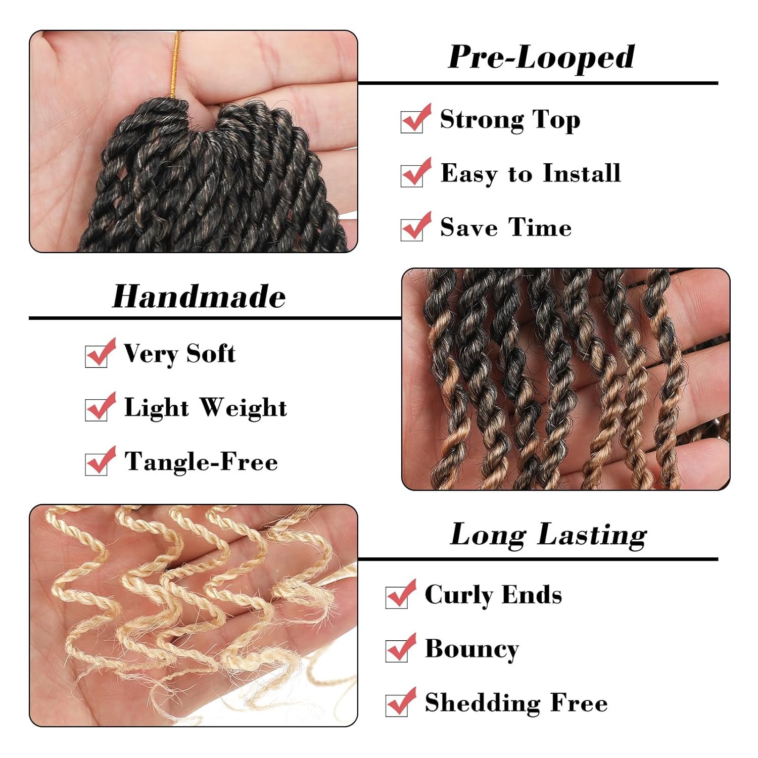 CURLY ENDS: Handmade and bouncy, lightweight and tight, no smell and itch free.