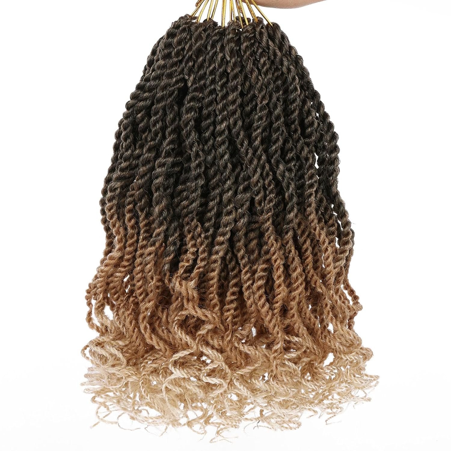 PACKAGE: 8 Packs Senegalese Twist Crochet Hair, 15 strands/pack, 120 roots in total. Contains a crochet hook. Available colors: #1B,T27,T30,T350,Tblue,TBUG,Tpurple,#1B/27/613,#1B/30/27