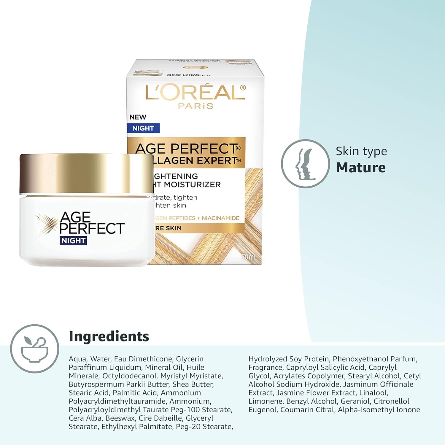 Ideal for women 50+, age Perfect anti-sagging & even tone night moisturizer improves skin density and firms mature skin.