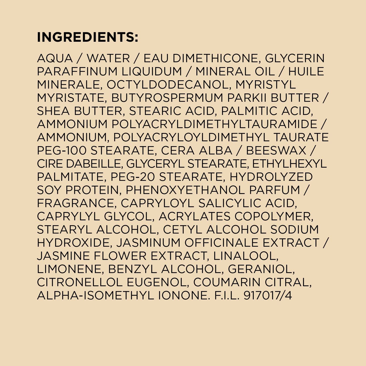 Infused with Soy Seed protein, an amino acid rich ingredient to help firm and even skin, non comedogenic, dermatologist tested for safety