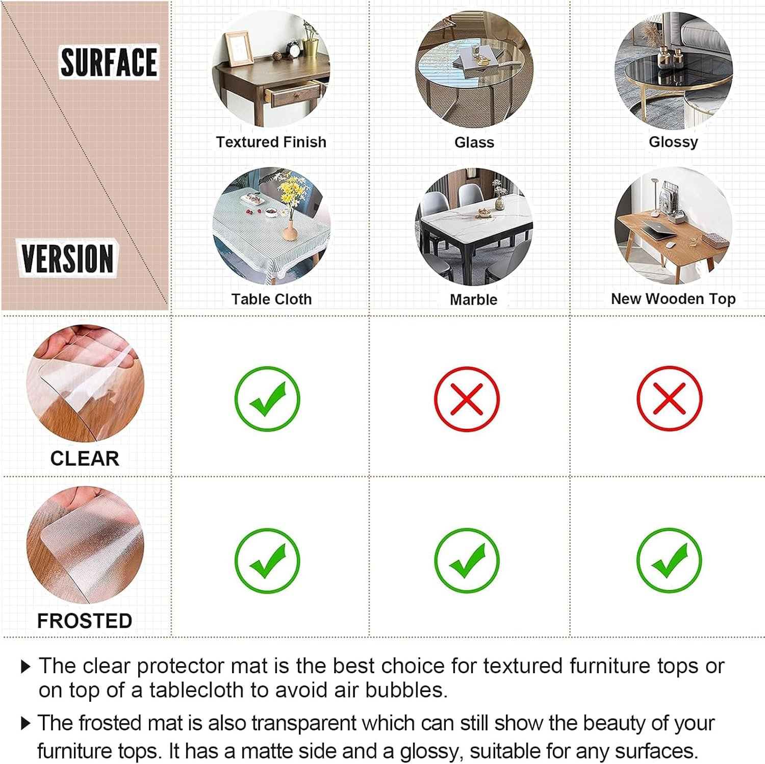 Versatile Applications: This scratch resistant table protector is highly recommended as a furniture surface protection. Great for wooden /marble/ glass tables; dining tables; office writing desks; computer desks; TV tables; dresser table; kitchen countertops; drafting tables; bedside tables; nightstand, nail table; RV tables; party tables, buffet tables, chair mats; hard floors, protect your expensive furniture from damage