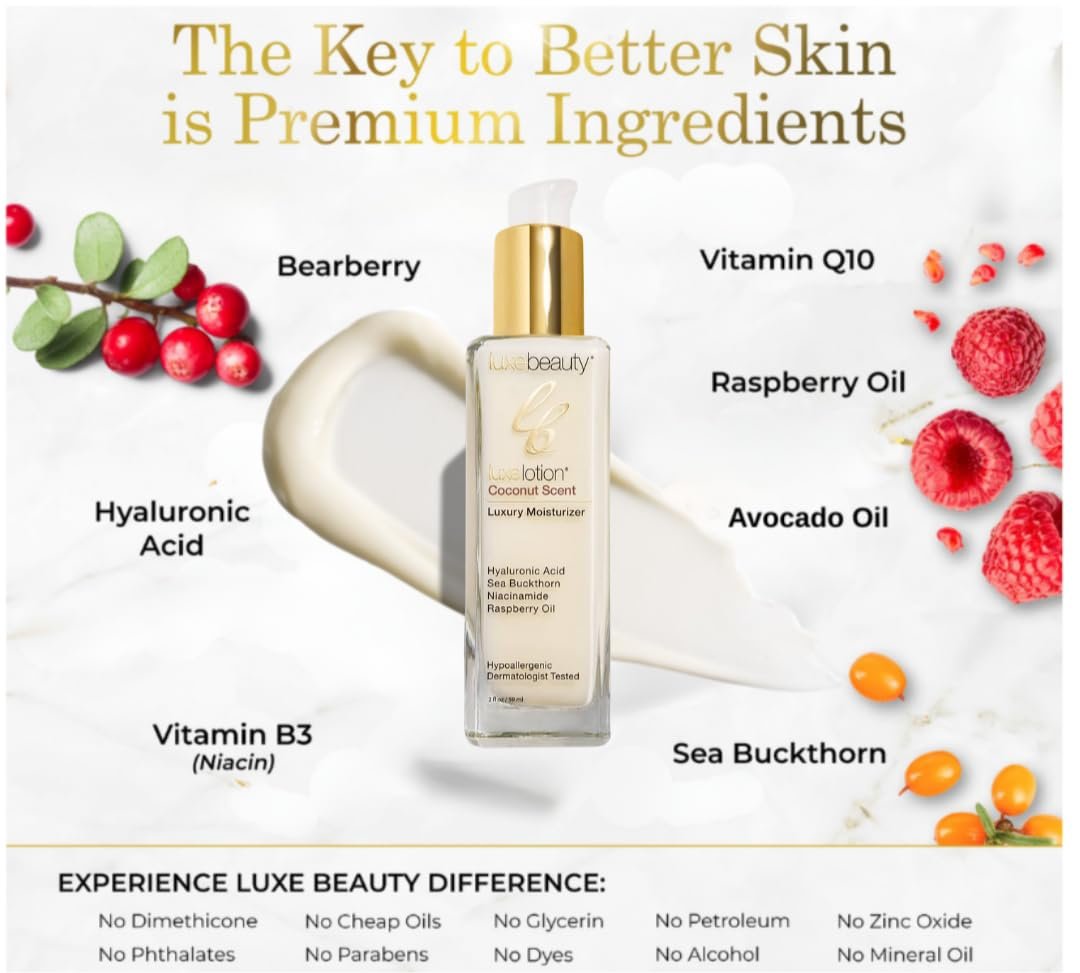 NON-GREASY MOISTURIZER – Let your skin breathe while nourishing and moisturizing with Luxe Beauty. Our lightweight, dimethicone-free lotion delivers powerful ingredients without a greasy, heavy, sticky, or oily feeling.