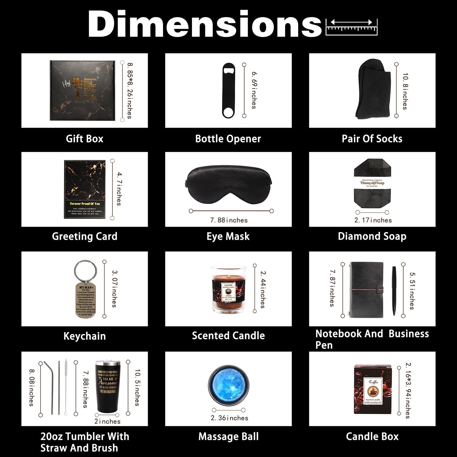 QUALITY COMPONENTS: Features a stainless steel tumbler, leather-bound journal with pen, aromatic candle, diamond soap, and silky eye mask for comfort