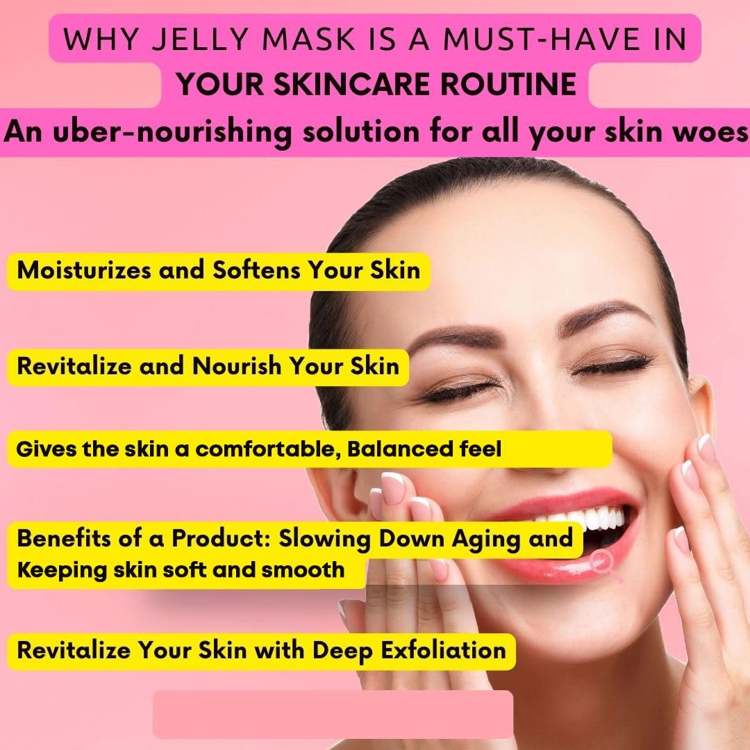 Hyaluronic Acid A hydration powerhouse, Hyaluronic Acid deeply moisturizes your skin, locking in moisture for a plump, dewy complexion. Perfect for facial treatments, it helps restore your skin’s natural moisture barrier, leaving it soft and supple.Retinol Renowned for its anti-aging benefits, Retinol works to reduce the appearance of fine lines, wrinkles, and uneven skin tone. This potent ingredient makes our jelly mask a must-have for achieving smooth, youthful, and revitalized skin.Collagen Collagen boosts skin elasticity and firmness, giving your face a lifted, rejuvenated appearance. A key component in our gel mask for face, it helps restore your skin’s natural bounce and vitality.Rose Oil Infused with the nourishing properties of Rose Oil, this mask soothes and calms the skin while providing antioxidant benefits. Rose Oil helps balance moisture levels, reduce redness, and enhance your skin’s overall health.