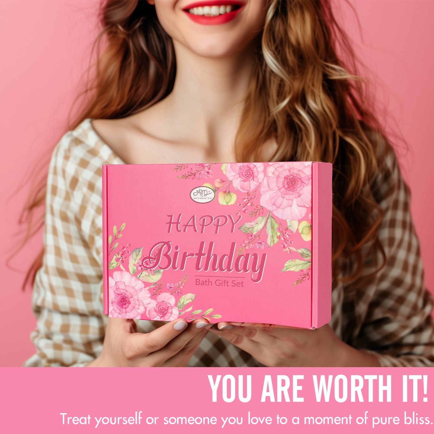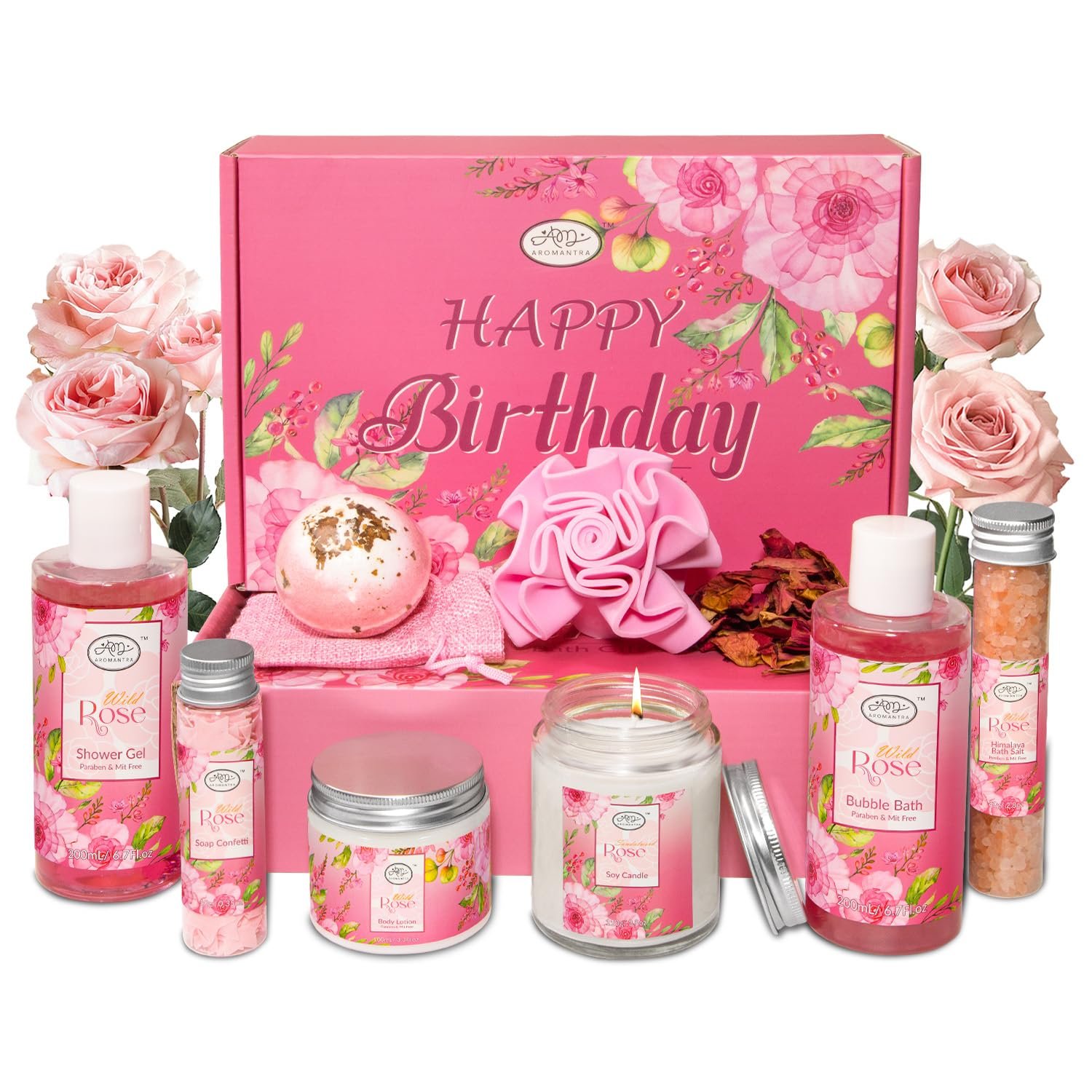 10 PCS BIRTHDAY GIFT SET: Aromantra’s spa gift set for women contains 200ml Shower Gel, 200ml Bubble Bath, 10g Soap Confetti, 100ml Body Lotion, 100g Bath Bomb, 80g Himalaya Bath Salt, 1* Eva Bath Puff, 100g Sandalwood & Rose Scented Candle and Rose Dry Flower Sachet Bag