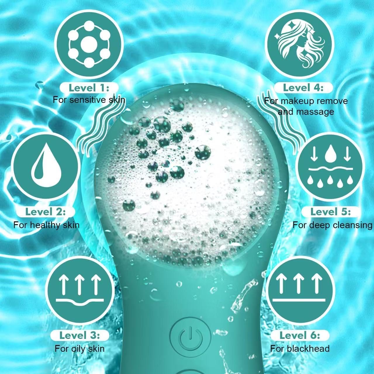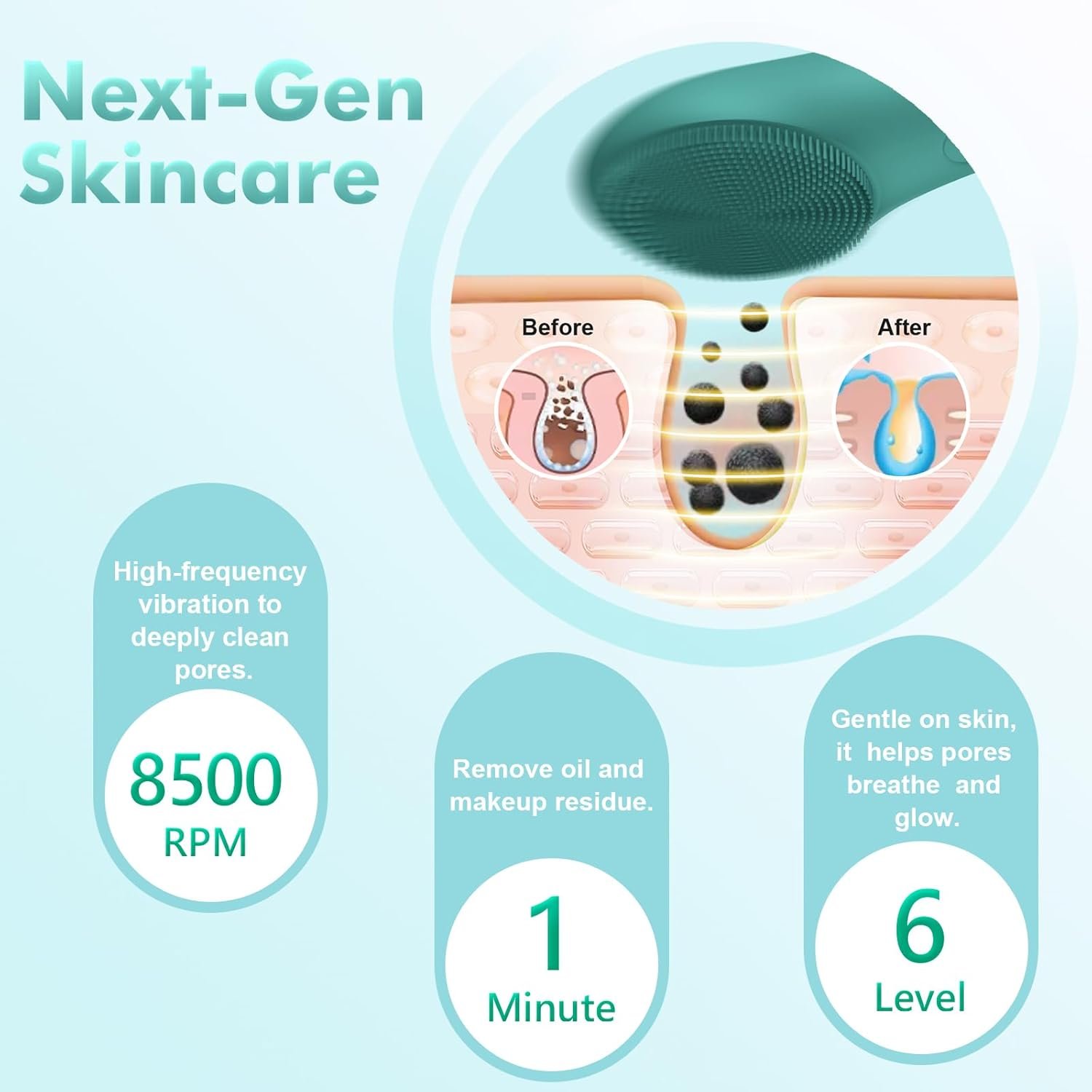 6-Speed Smart Silicone Face Scrubber: This portable silicone facial brush offers 6 adjustable intensities to meet all skincare needs—whether you have sensitive, dry, combination, or oily skin.Our face brush delivering 5x deeper cleansing than manual methods, silicone brush minimizes enlarged pores and evens skin tone. Facial scrubber fixed-head design not rotation, preventing the tugging and irritation associated with traditional brushes.