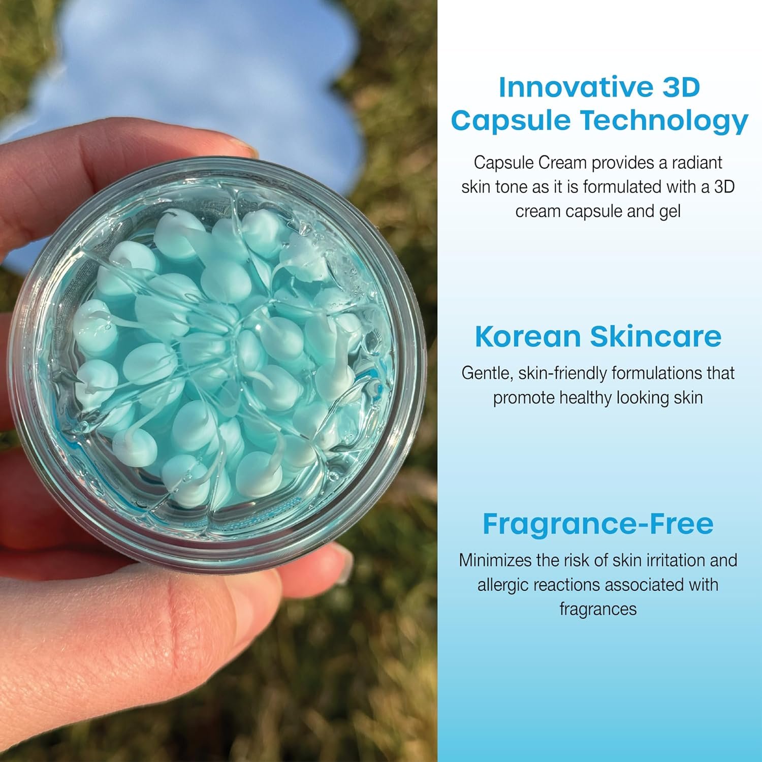 Innovative 3D Capsule Technology: Our breakthrough formula harnesses advanced 3D cream capsules within a soothing gel base. This unique combination ensures precise delivery of potent ingredients for a transformative skincare experience.