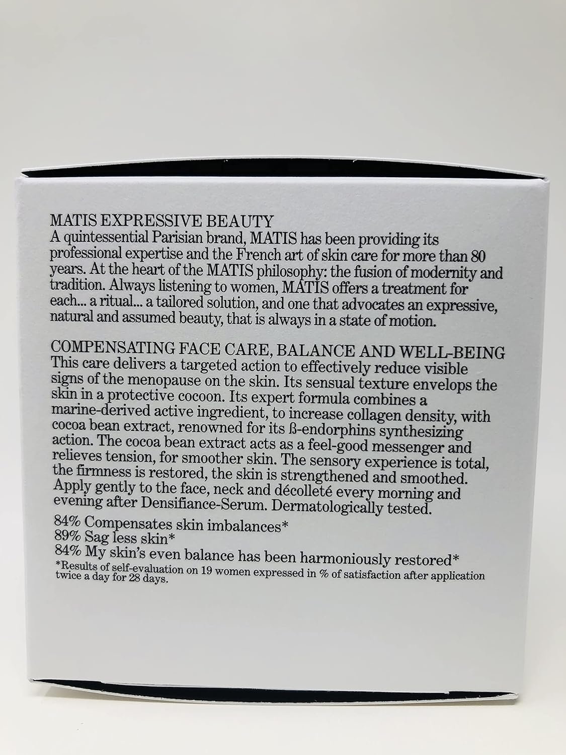 This care delivers a targeted action to effectively reduce visible signs of the menopause on the skin. Its expert formula combines a marine-derived active ingredient, to increase collagen density, with cocoa bean extract, renowned for its ß-endorphins synthesizing action. The cocoa bean extract acts as a feel-good messenger and relieves tension, for smoother skin. Key Ingredients: Omega 3, 6, and 9 from cassis grape seeds, cocoa extract Usage: Apply gently to the face, neck and décolleté every morning and evening after Densifiance-Serum. Content : 50 ml