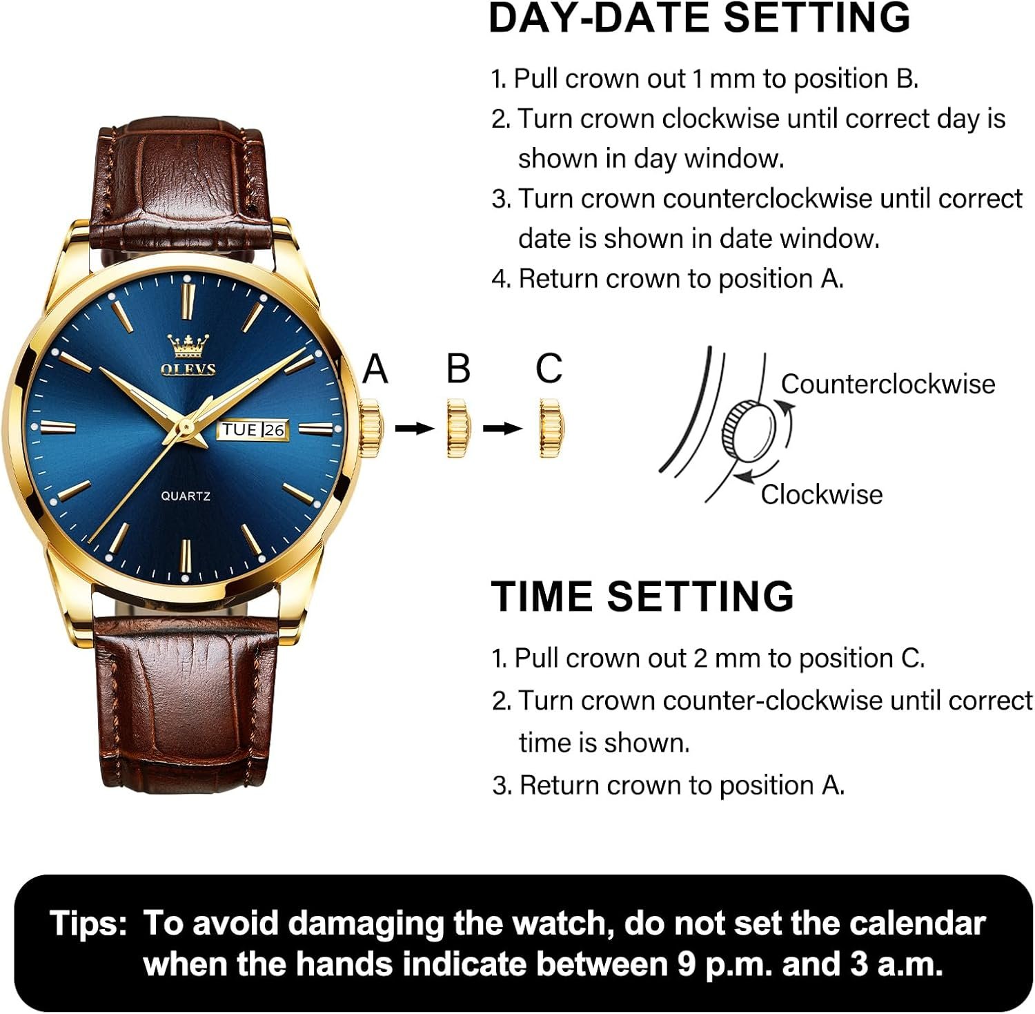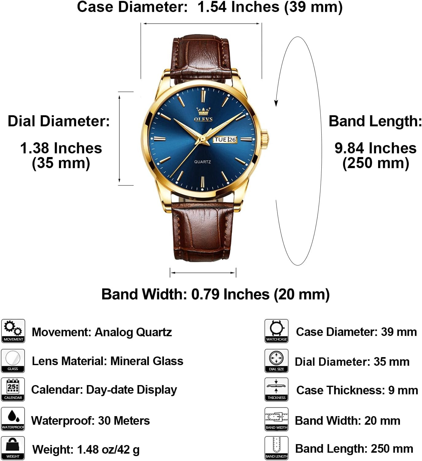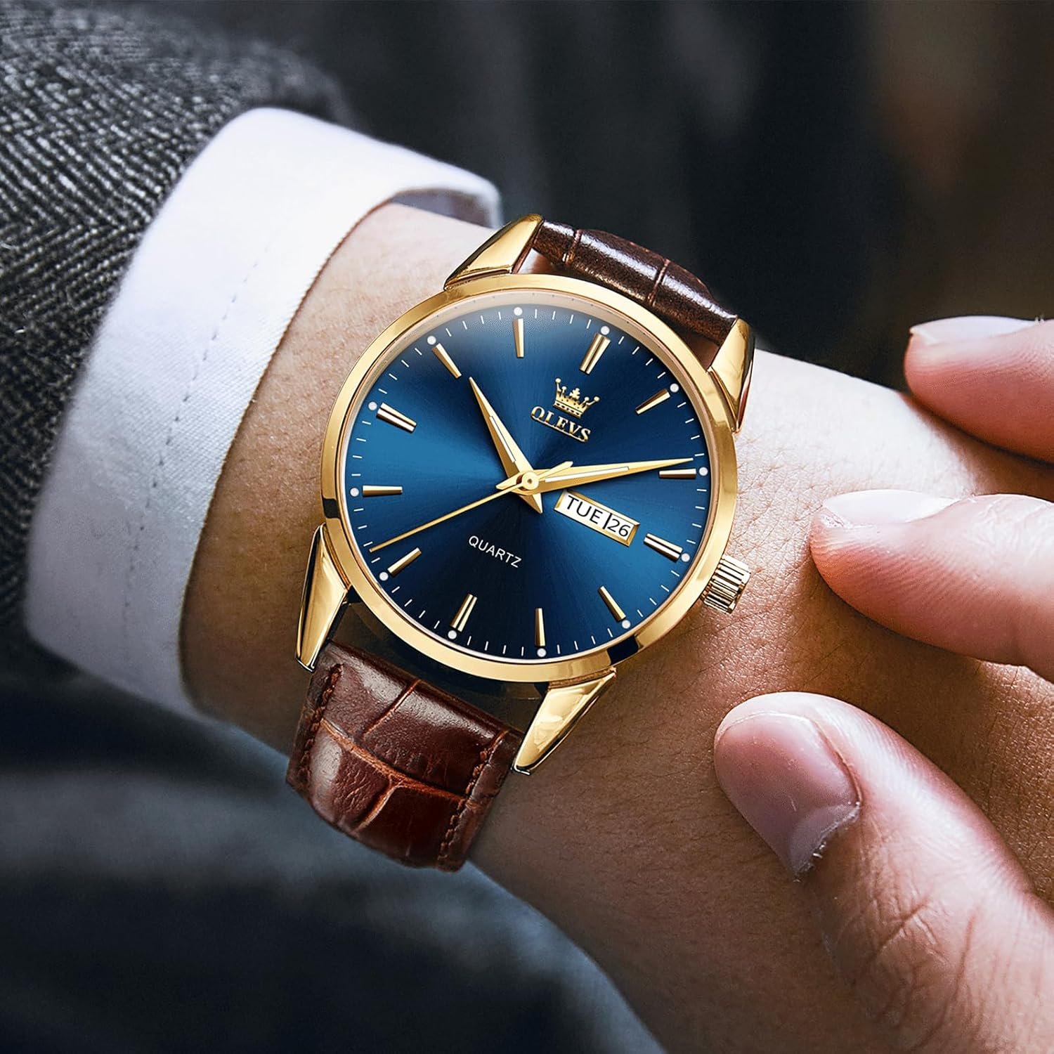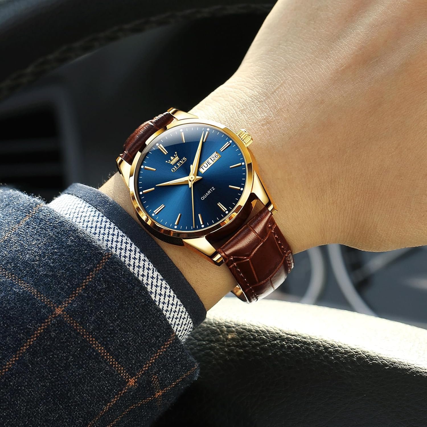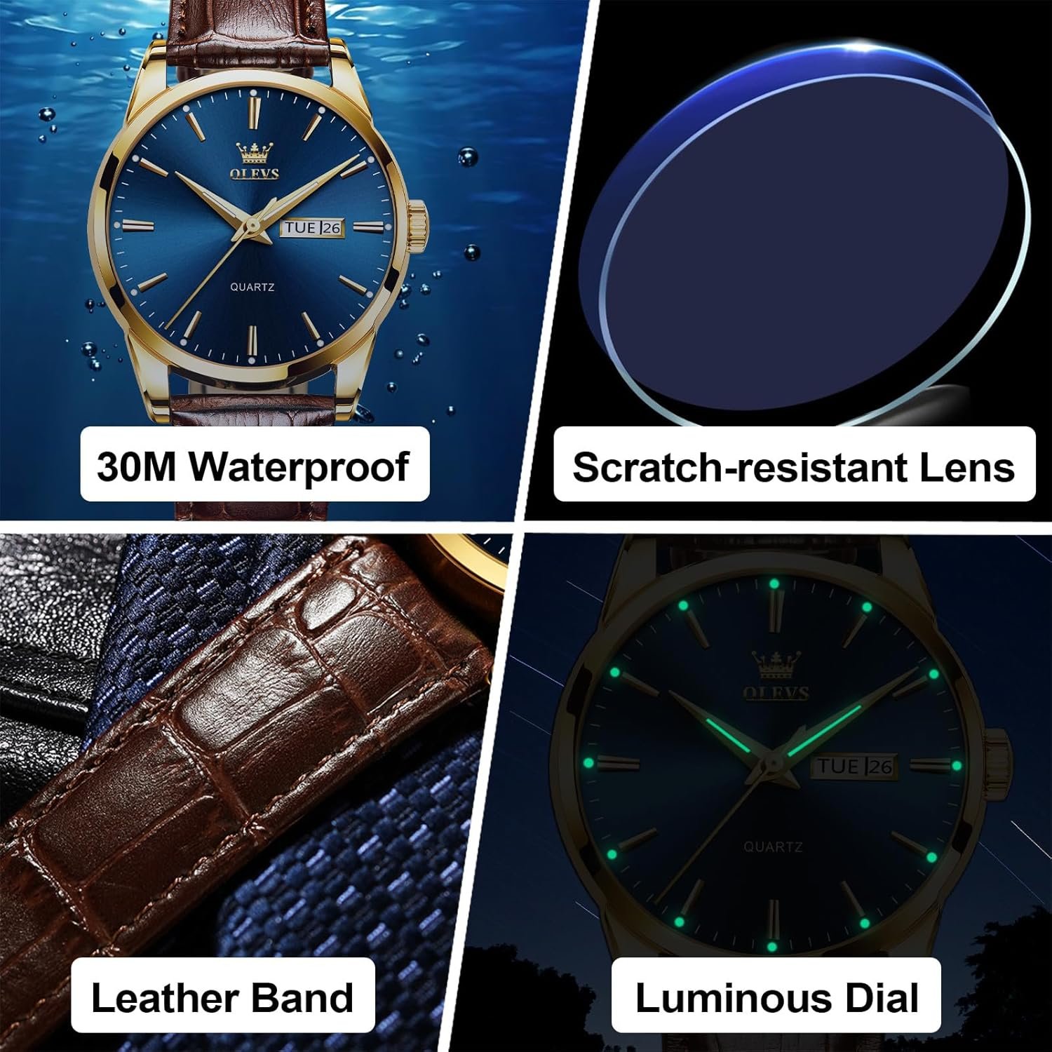 Men’s Casual Leather Watch, Easy to Read Three-Hand Analog Stainless Steel Watches for Men, Minimalist Day Date Waterproof Luminous Mens Quartz Wristwatch