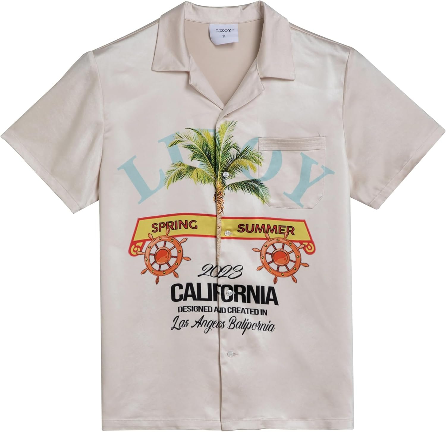Men’s Satin Casual Hawaiian Button Down Short Sleeve Shirt