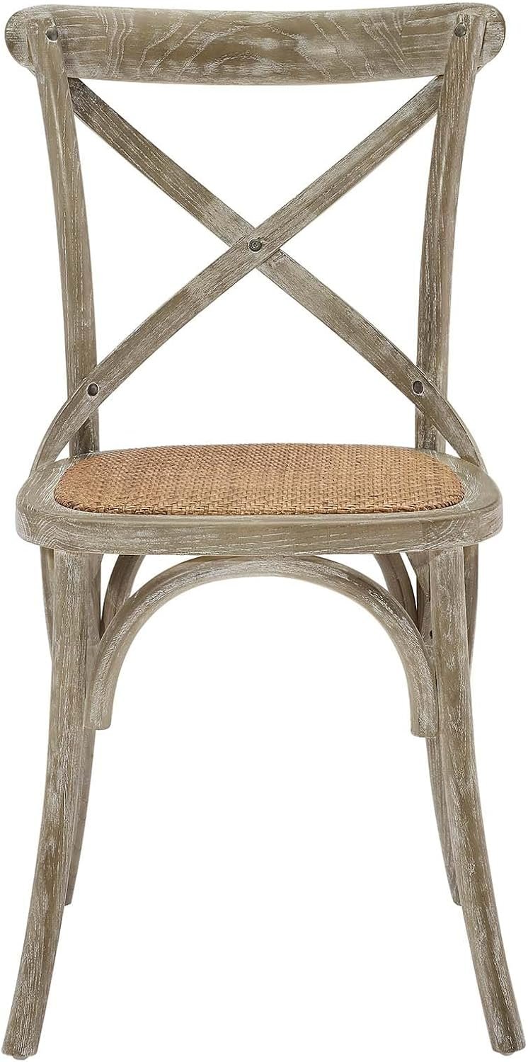 Modway Gear Rustic Modern Farmhouse Elm Wood Rattan Dining Chair in Gray