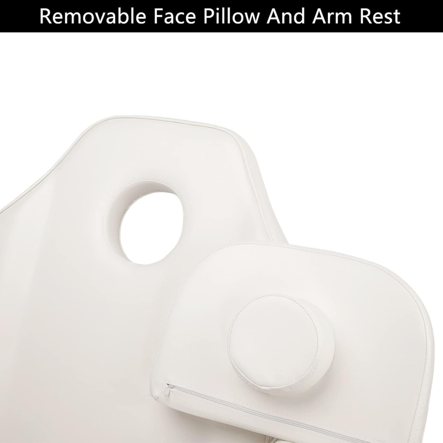 【Humanized Adjustable】Our tattoo bed has a backrest and footrest, the headrest and footrest are easily adjusted to a comfortable angle according to the needs of the clients. The spa bed backrest adjusts from 65° to 180° and the footrest adjusts from 0° to 70° for endless positioning possibilities. Provide ample relaxation, as the removable headrest opens to a facial cradle for clients to breathe comfortably while laying face-down, and the armrests can easily be removed for more space to move, come with a long hook, you can place towels on it.