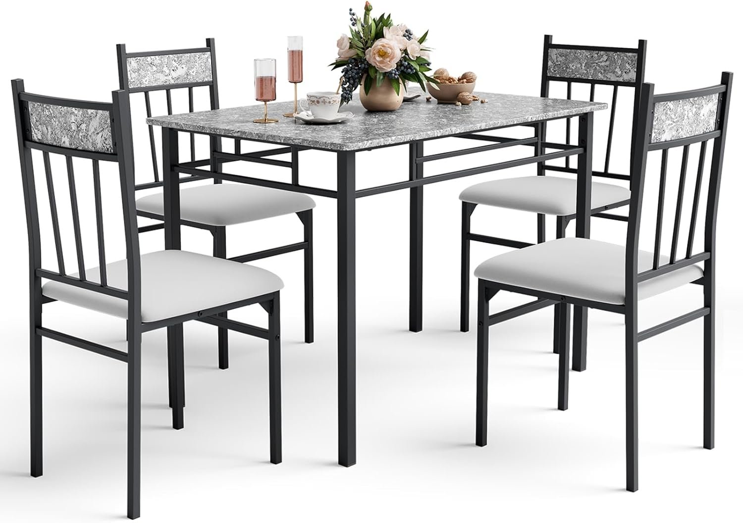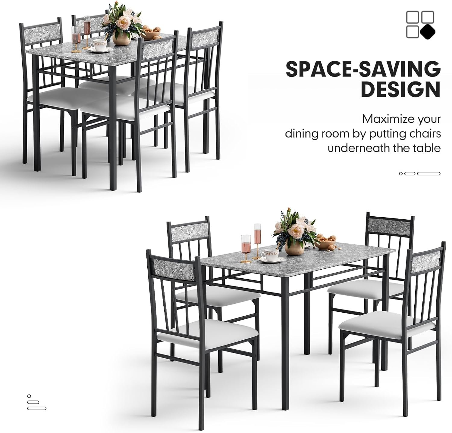 【5 Piece Kitchen Table Set】5 piece dining set with a marble-look dinette table and 4 cushioned side chairs, NAFORT dining table with chairs easily perform at your next Sunday dinner for 4-6, is perfect for small kitchen and dining in dorms, apartments, or other rooms with limited space.