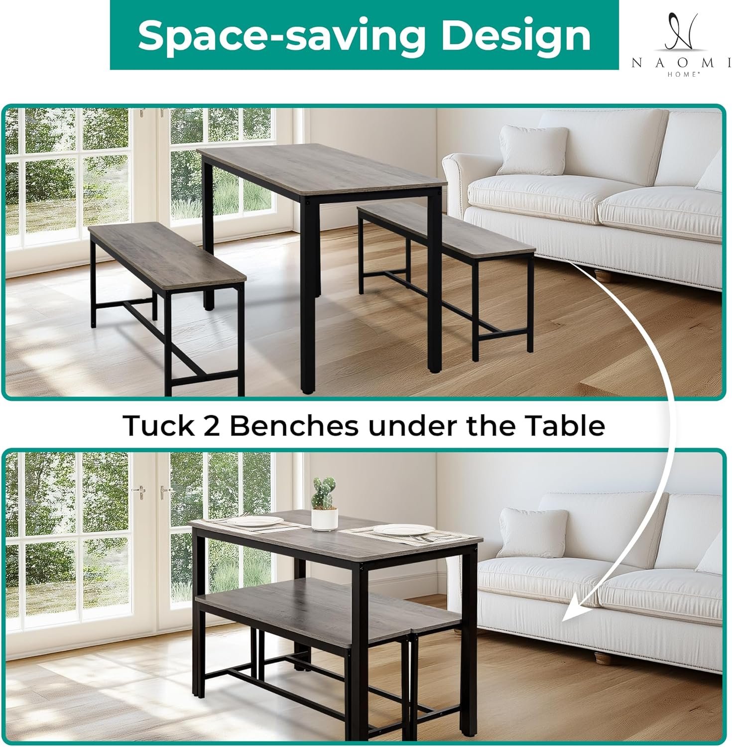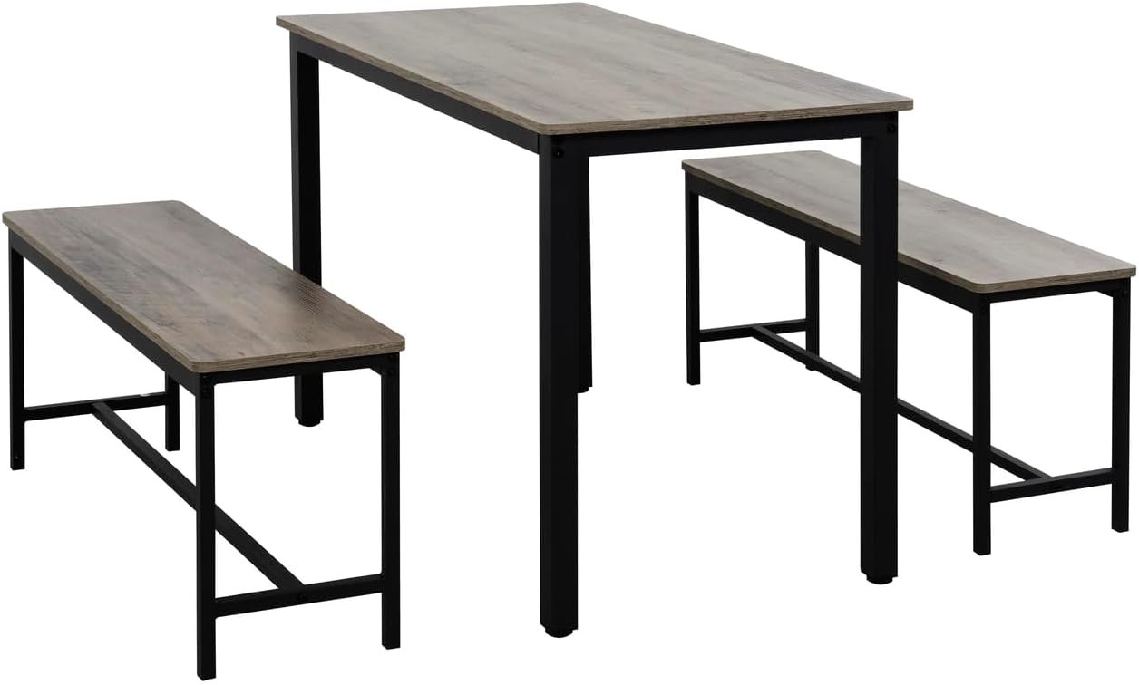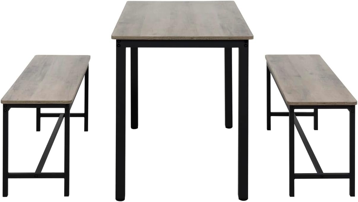 Sturdy Wood Metal Dining Set with Steel Frame: Built with a durable wood metal dining set top and reinforced steel frame, this bench seating dining set is made to last. Each bench supports up to 220 lbs, while the table offers a stable base for daily dining, studying, or working from home.