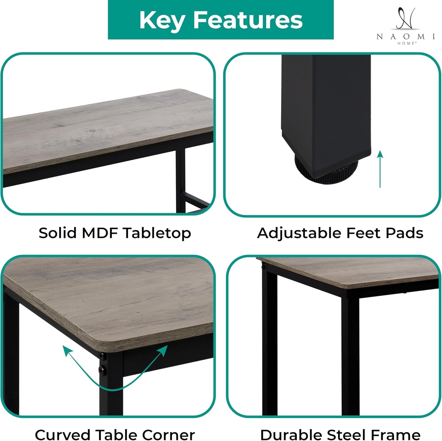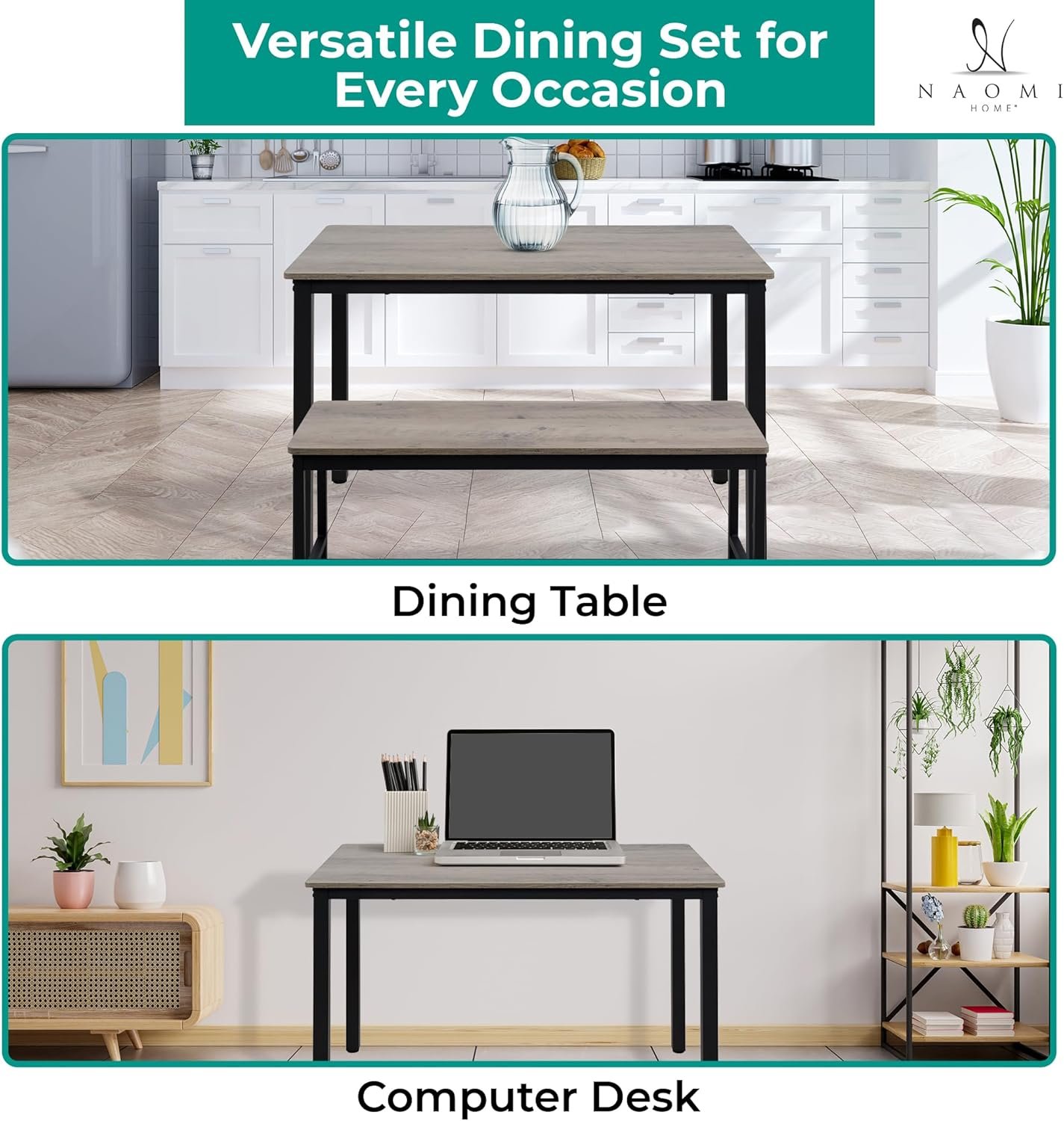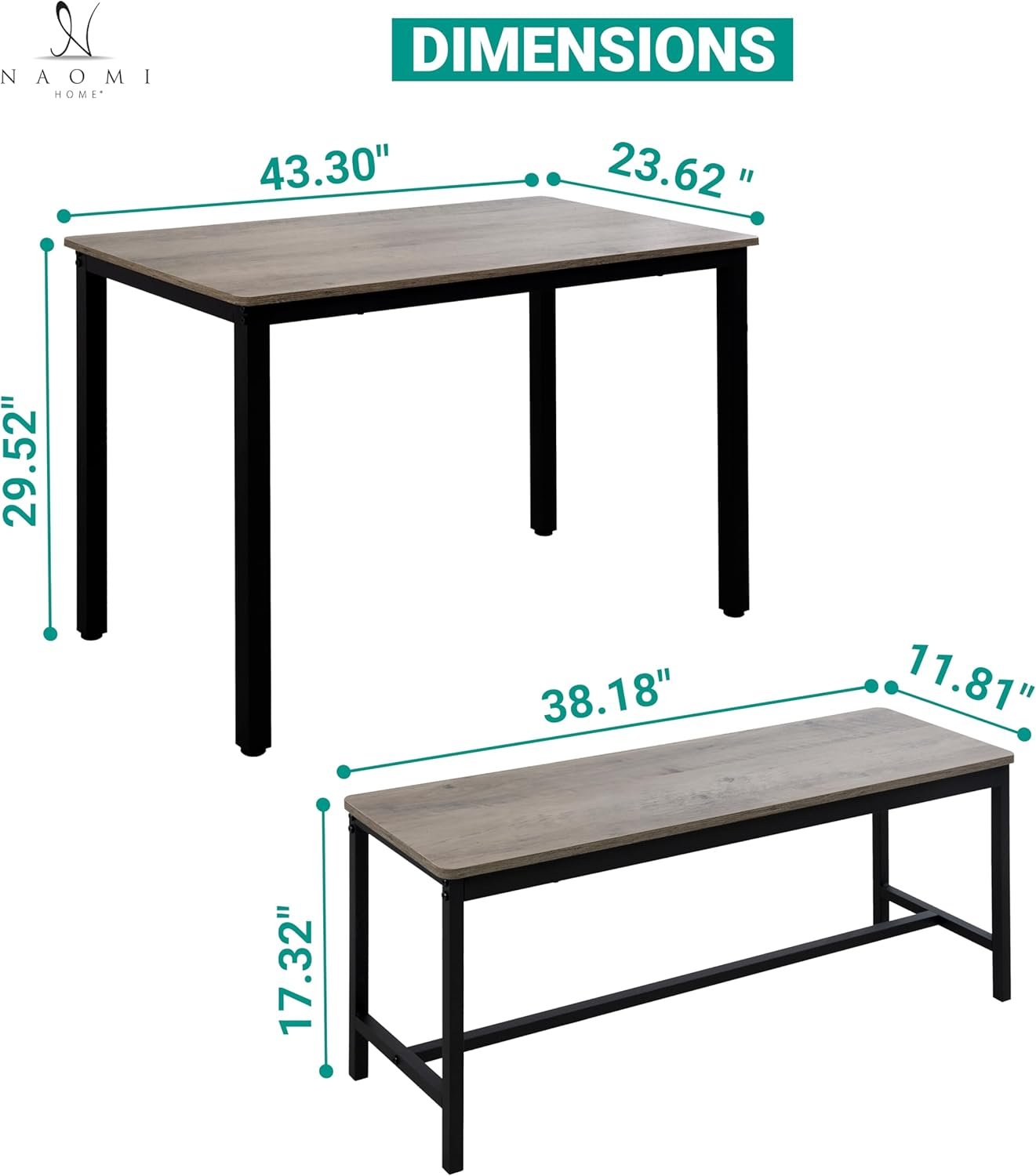 Be the first to review “Naomi Home Paola Dining Set for 4 with 2 Benches, Kitchen Table Set with Metal Frame & MDF Board, Space-Saving Dinette for Kitchen, Dining Room – Gray”
