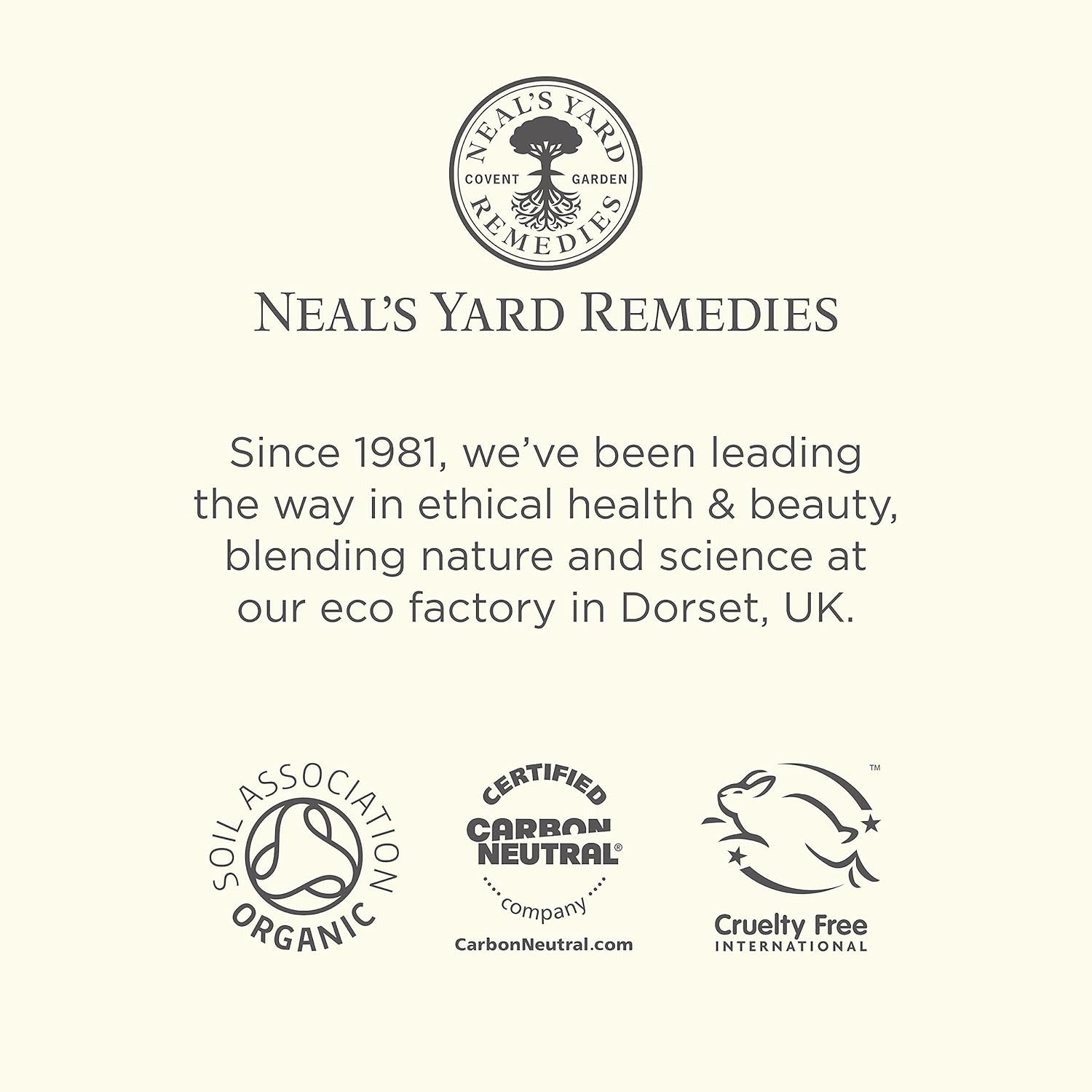 NEAL’S YARD: Founded in Covent Garden, London in 1981, we’ve been working with nature to make award-winning ethical health and beauty collections for over 40 years. Vegan, Cruelty-Free, Certified Carbon Neutral and Good Shopping Guide Ethical Company.