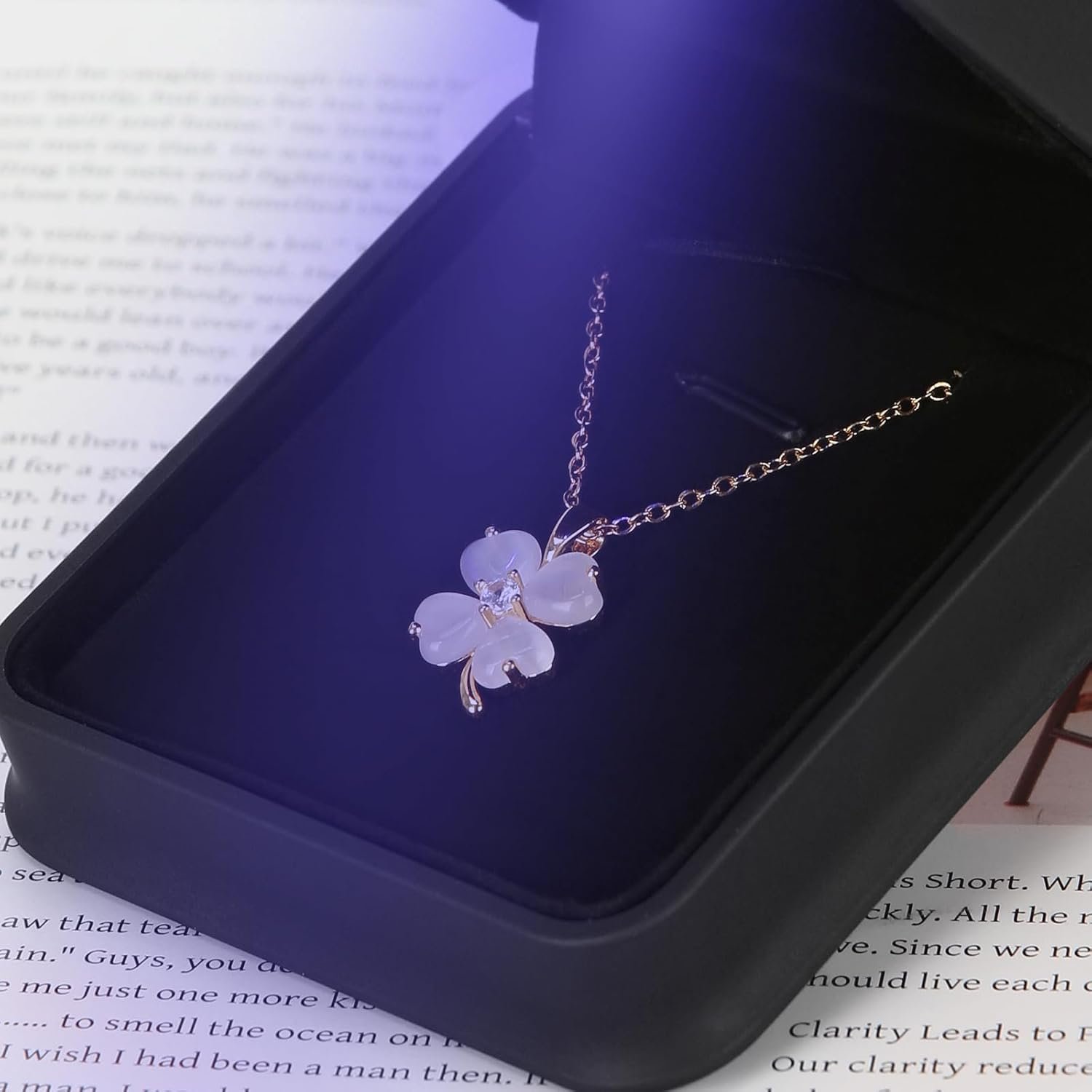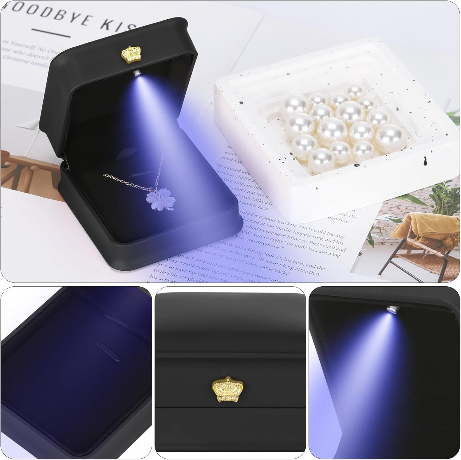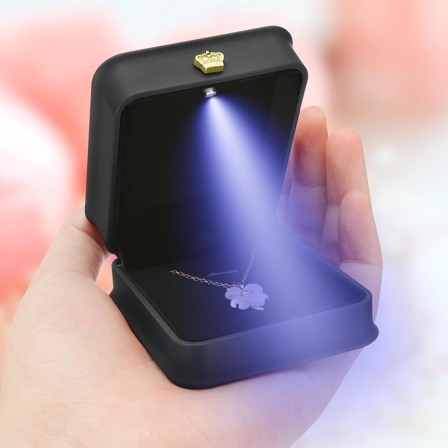 With LED Light : Suitable for necklaces, pendants, bracelets, earrings and other small jewelry, when you open the necklace case, the LED will light up, and the soft light will significantly enhance the luster of the jewelry or diamond in the romantic moment to bring your ring to life