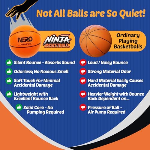 Ninja Silent Basketball- Soft Foam Indoor Basketball Size 3 (7 inches) | Soundless Basketball for Quiet Dribbling and Indoor Training