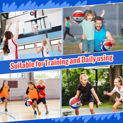 Ideal Gifts for Kids: these bulk basketballs are in classic blue, white and red colors, with classic and eye-catching patterns, Each basket ball comes with an air pump, which you’ll be able to use for Christian Charity Donation Supplies for child, birthday gifts, Children’s Day gifts, first meeting gifts, school entrance gifts, Christmas gifts, etc
